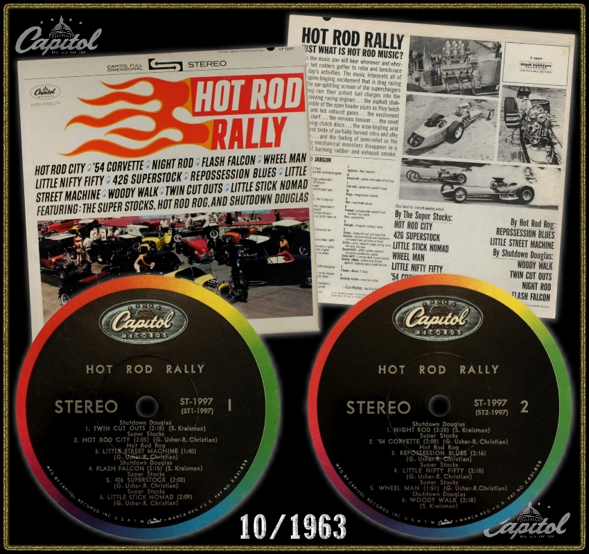This is a Gary Usher production even though it credits Jim Economides as producer. Jim Economides also gets producer credit on Dick Dale’s hot-rod themed albums for Capitol CHECKERED FLAG and MR. ELIMINATOR and Jerry Cole’s HOT ROD DANCE PARTY on Capitol |