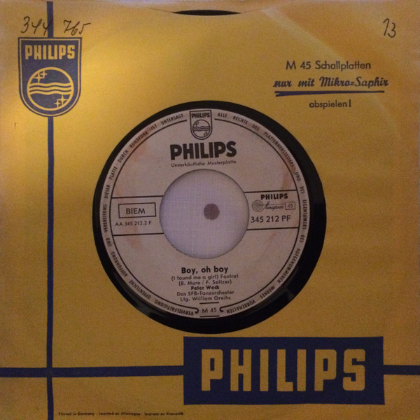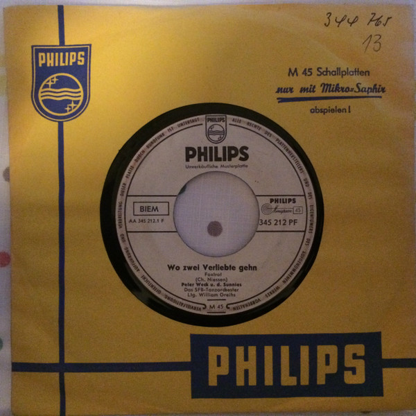 Was die Richtigkeit der Präfixe betrifft (345 = Aufnahme in Deutschland/341 = Aufnahme in Österreich), ist PHILIPS in der Regel sehr genau. Ich erinnere mich aber, dass es hie und da, kurz gesagt, extrem wenig Fälle gegeben hat, wo dieser Hinweis nicht stimmte. Diese Peter Weck-Single muss einer dieser wenigen Fälle sein.