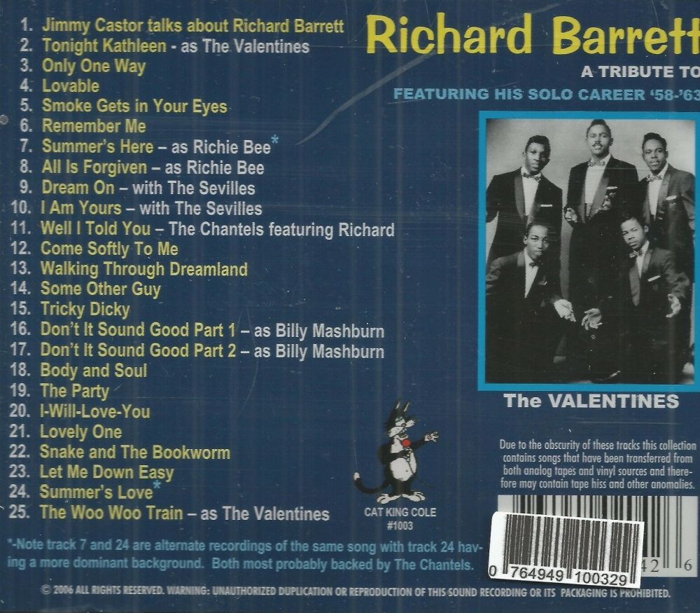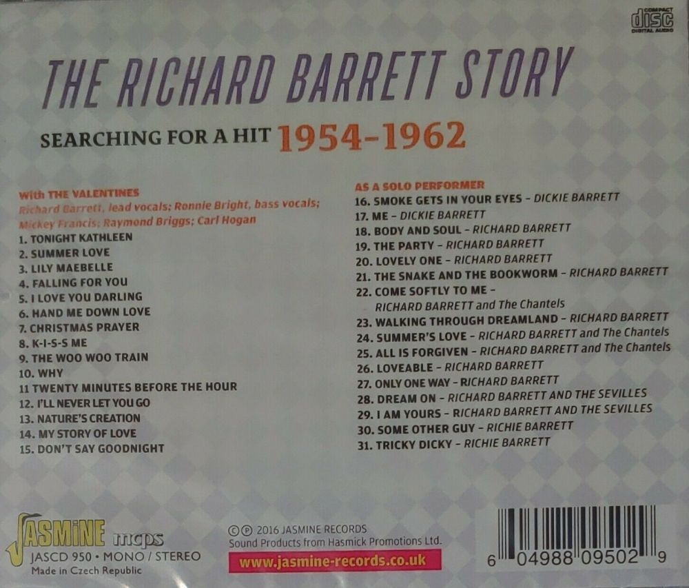 Irgendwo in diesem Thread wurde es zwar bereits kurz angedeutet und diesen Hinweis möchte ich hiemit etwas verstärken. Richard Barrett gab es nämlich auch auf deutscher Pressung, allerdings nur auf einer einzigen Single: