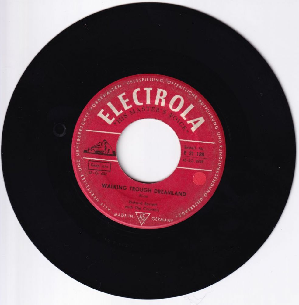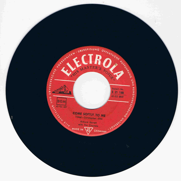 ELECTROLA (D) 06 59....E 21 188....Richard Barrett with The Chantels..Come Softly To Me/Walking Trough (sic!) Dreamland (ORCHID 5004 dann GONE 5056)