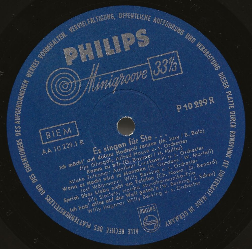 11 56....344 858 PF....Eva May u. d. Starlets, Gesang Adalbert Luczkowski m. d. Tanzorchester d. WDR..Von einem Ring will er nichts wissen/Eva May u. d. Starlets, Gesang Alfred Hause m. d. Tanzorchester d. NDR..Ja, der Trompeten-Swing