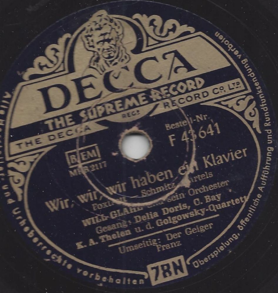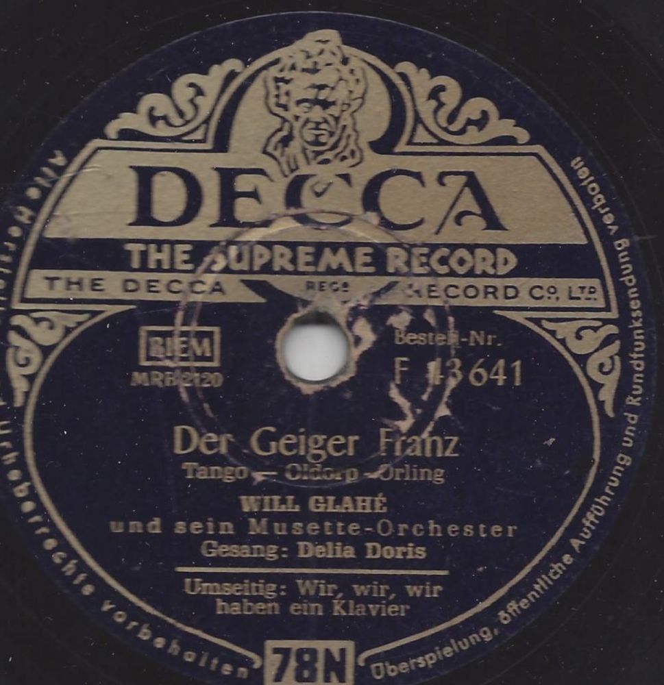 ?? 54....D 17 641....Will Glahé und sein Musette-Orchester Gesang: Delia Doris..Der Geiger Franz/Will Glahé und sein Musette-Orchester Gesang: Delia Doris, C. Bay, K. A. Thelen u. d. Golgowsky-Quartett Wir, wir, wir haben ein Klavier