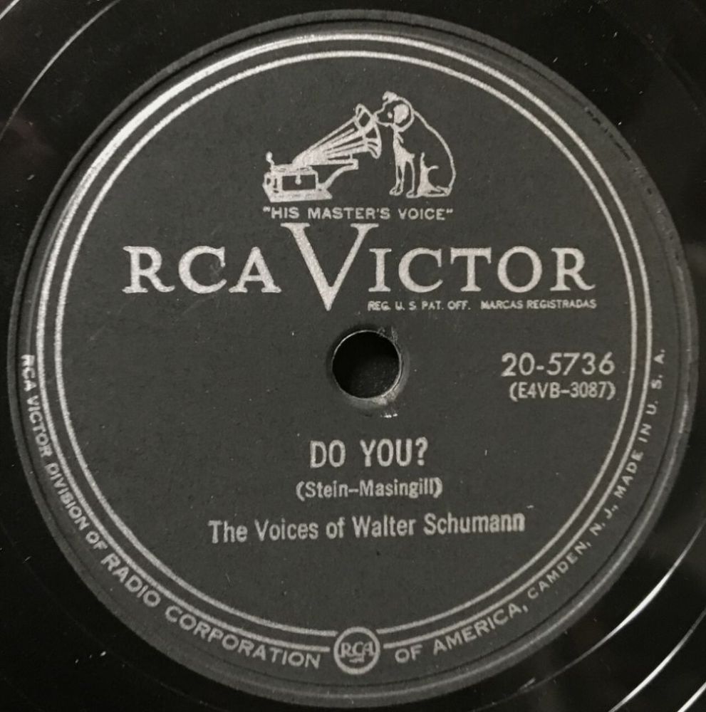 05 51....F1536....THE VOICES OF WALTER SCHUMANN Tenor Solo by Eddie Miller..Fools Rush In (Where Angels Fear To Tread) (45-7436) Y/THE VOICES OF WALTER SCHUMANN..Holiday For Strings (45-7185) Z