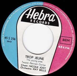 ?? 62....45 S 256....chant: NICOLE JOSY Orchestre: Ray Bells..Eh ! Teenager eh ! (256 A)/chant: NICOLE JOSY Orchestre: RAY BELLS..Trop jeune (The young ones) (256 B)