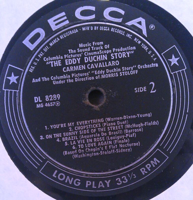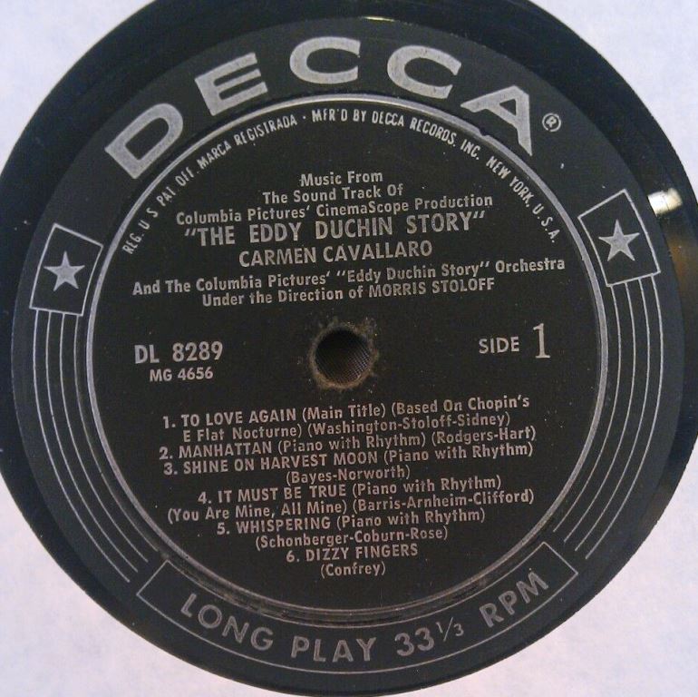 04 56....9-29912....CARMEN CAVALLARO AND COLUMBIA PICTURES' "THE EDDIE DUCHIN STORY" ORCHESTRA..Dizzy Fingers (45 L 8936)/CARMEN CAVALLARO..Chopsticks (45 L 8917)