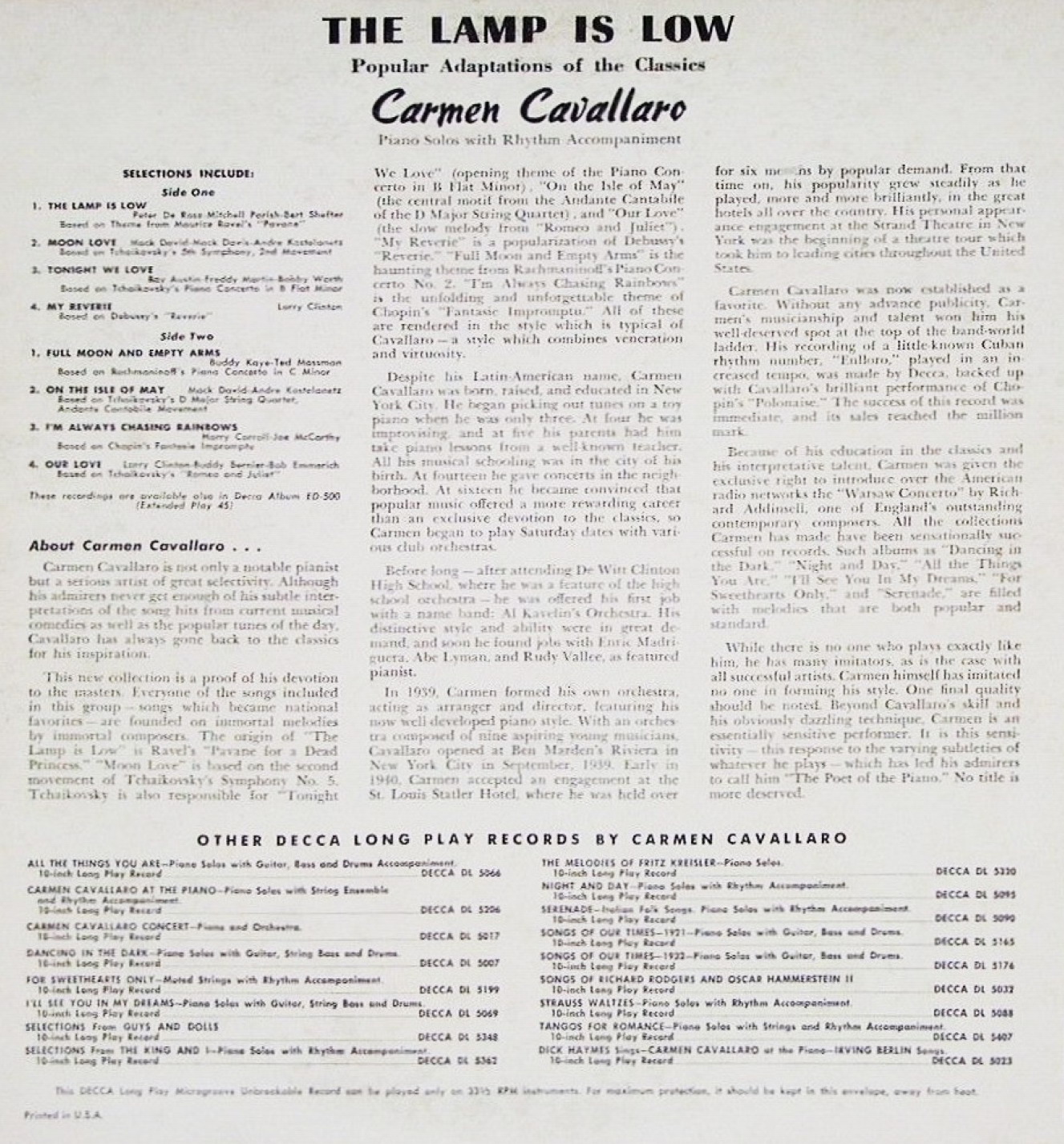 03 51....9-27459....Album No. 9-221 (8 Sides—5) CARMEN CAVALLARO..Liebesleid (Love's Sorrow) (45-L 5935)/(8 Sides—6)..Liebesfreud (45-L 5915)