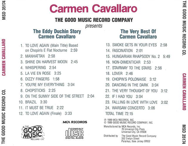 09 61....31304....CARMEN CAVALLARO..Back Street (111,019)/Moon River (111,020)