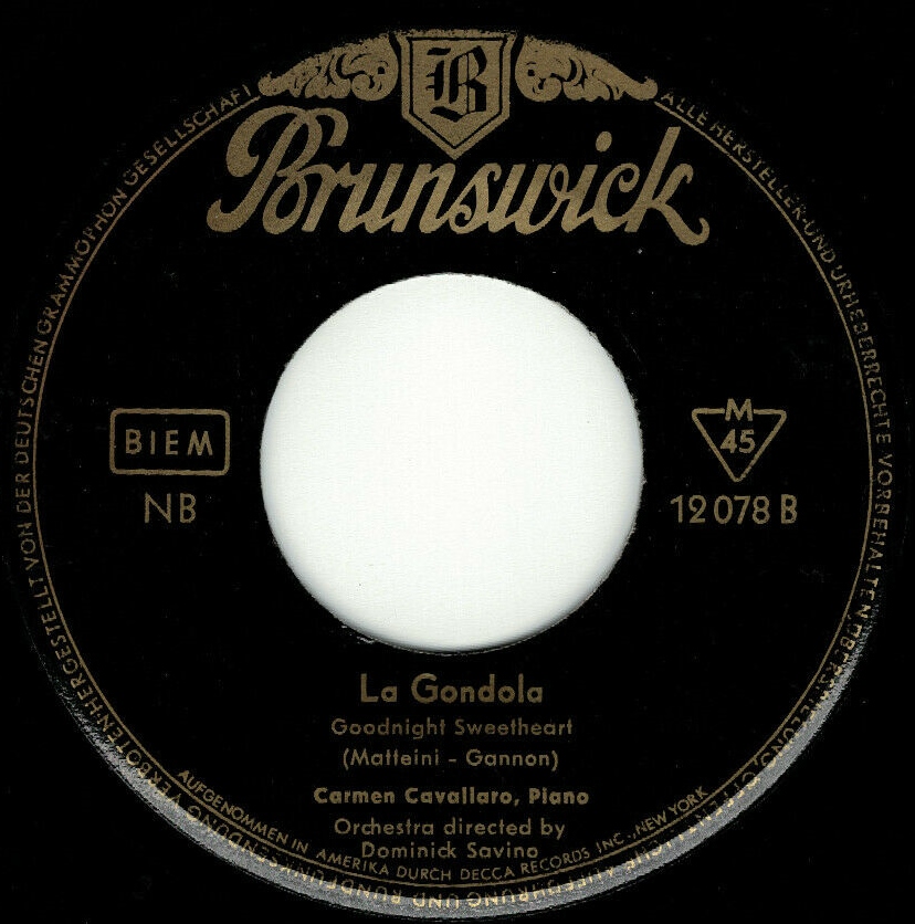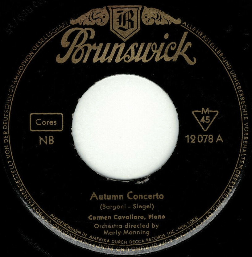 ?? 56....12 078 A....Carmen Cavallaro, Piano Orchestra directed by Marty Manning..Autumn Concerto/ B….Carmen Cavallaro, Piano Orchestra directed by Dominick Savino..La Gondola Goodnight Sweetheart (DECCA 30076)
