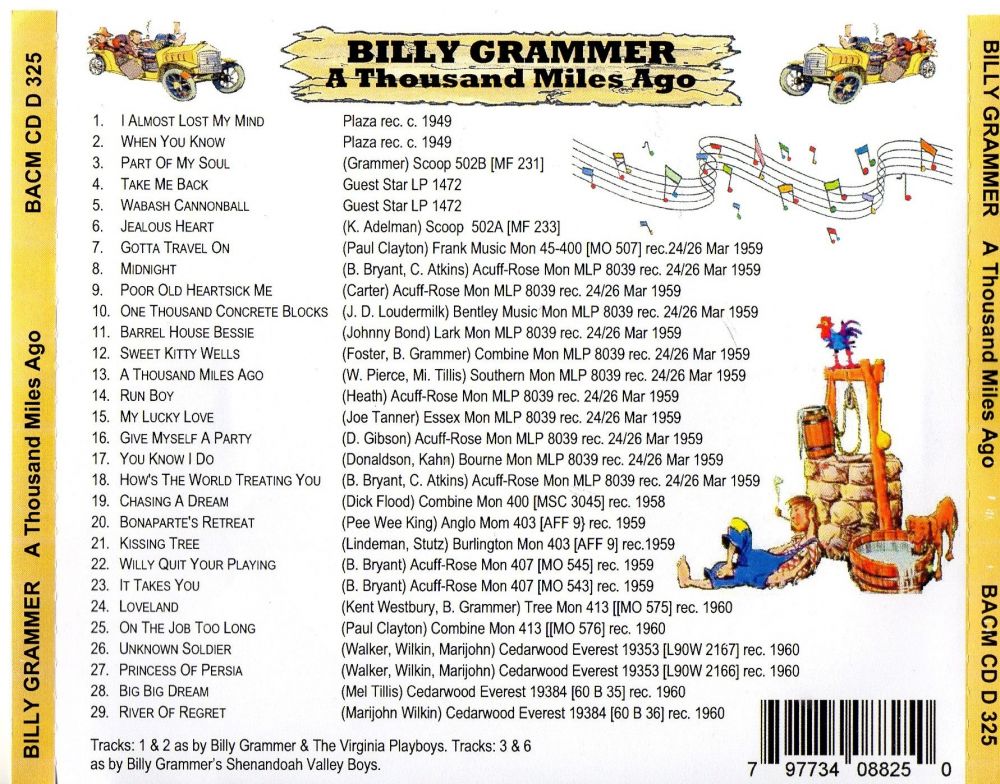 Alles, was über Billy Grammer geschrieben wird, ist positiv und es ist höchst amüsant zu erfahren, dass er ein so natürliches Talent an der Gitarre war, dass er bei lokalen Square-Dances, wenn er in der Streicherband seines Vaters spielte, tatsächlich einnickte, aber weitermachte einen gleichmäßigen Rhythmus auspumpen. Viele Jahre später erinnerte sich Billy, dass er als Kind so viele Squaredances gespielt hatte, dass sich der Rhythmus und die Akkorde in sein Unterbewusstsein eingebrannt hatten und dass er für sein Talent, im Schlaf Gitarre zu spielen, bekannt wurde: „Wenn das Set endete, hat Dad mich mit seinem Geigenbogen auf der Schulter angezupft und mich aufgeweckt'', sagte Billy.