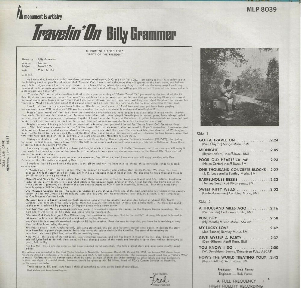 Den großen Erfolg, diesen ersten "cross-over"-Hit, “Gotta Travel On“, konnte der Mann aus Illinois nie wiederholen, obwohl er einen anderen Paul Clayton-Song, “On The Job Too Long“, ausprobierte und mit anderen Top-Komponisten der Zeit wie John D. Loudermilk (“One Thousand Concrete Blocks“), Don Gibson (“Give Myself A Party“), Mel Tillis (“Big, Big Dream“) und Marijohn Wilkin (“River Of Regret“).