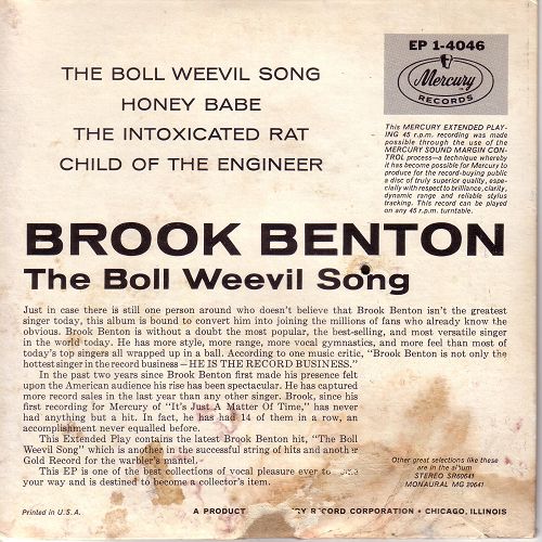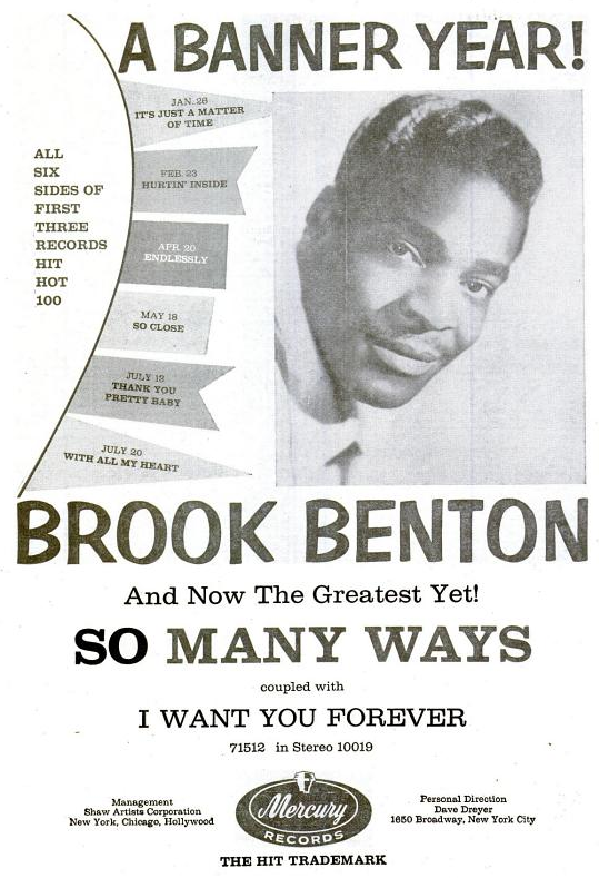 Brook Benton wurde am 19. September 1931 in Camden, South Carolina, als Benjamin Franklin Peay geboren und verstarb am 9. April 1988, erst 56-jährig, in New York City, geschwächt durch eine Lungenentzündung, an einer Hirnhautentzündung.