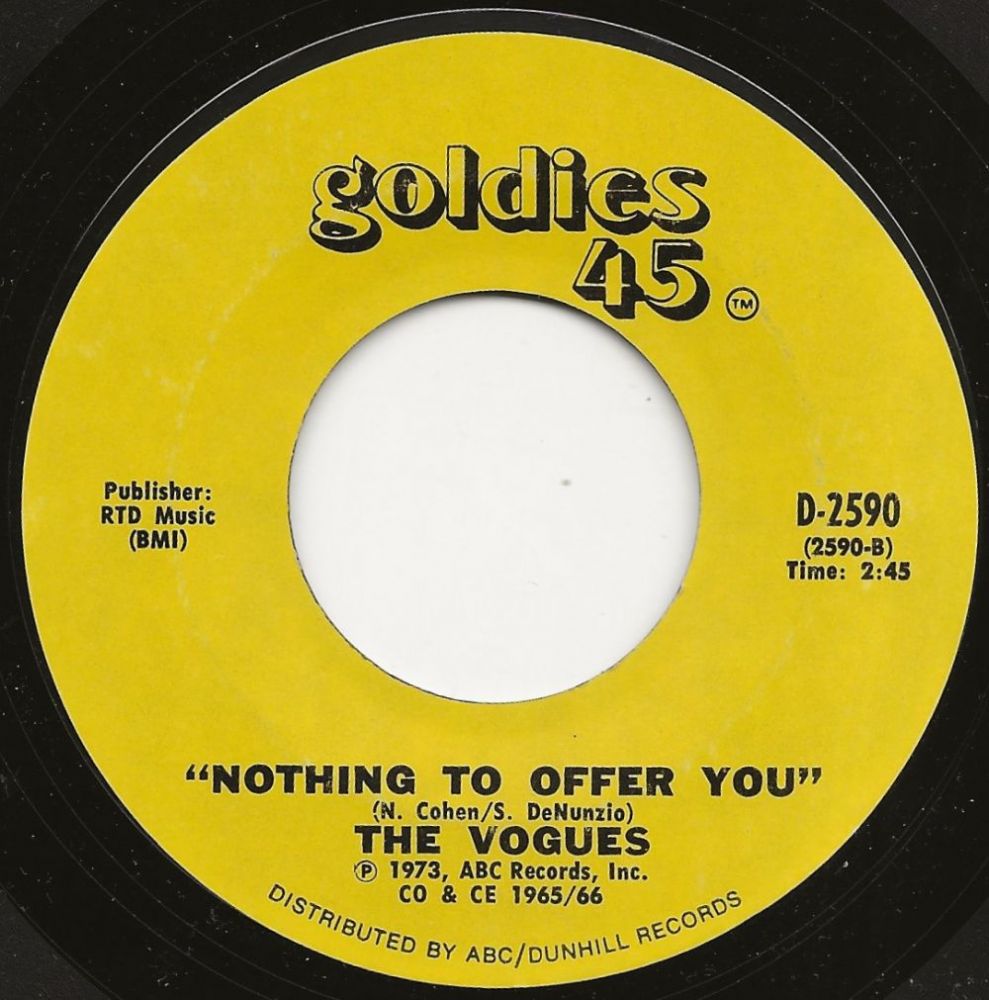 Wenn man weiß, dass es diese Vogues erst im Sommer 1965 erstmals auf Schallplatte gab, irritiert einem der LP-Aufdruck "THE VOGUES The Complete Singles (1959-1971)” ziemlich. Aber Billy hat es schon sehr dezent angedeutet, wie es zu dieser eigentümlichen Angabe kam, indem er die WILLETT-Single des Quintettes The Valaires, da fehlt Einer, postete. Ich werde das jetzt brutaler, schöner klingt natürlich „weniger dezent“, darlegen.