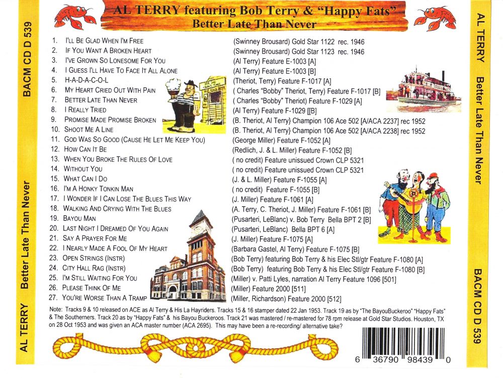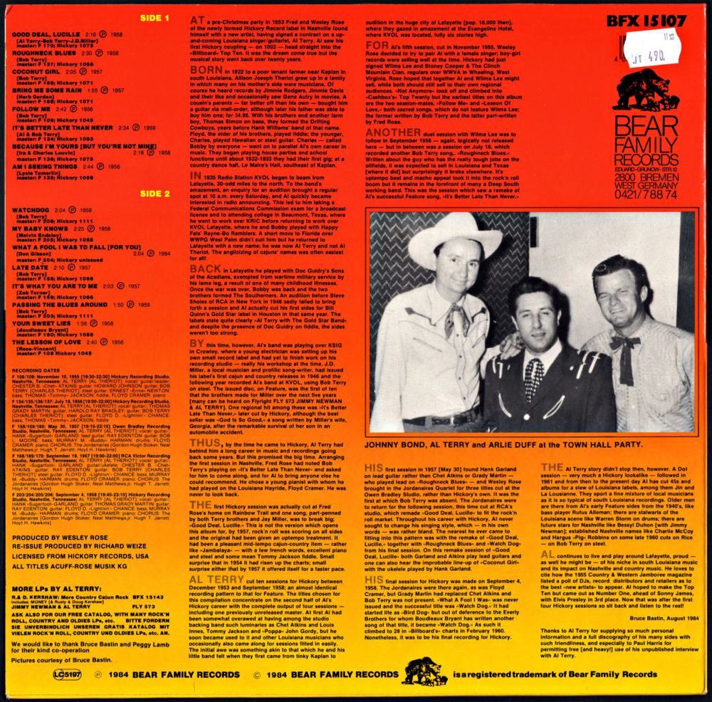 Terry worked was Jimmy C. Newman, appearing in several recordings in the late 40s/early 50s. Terry also worked as a disc jockey on KROF radio in Abbeville, Louisiana.