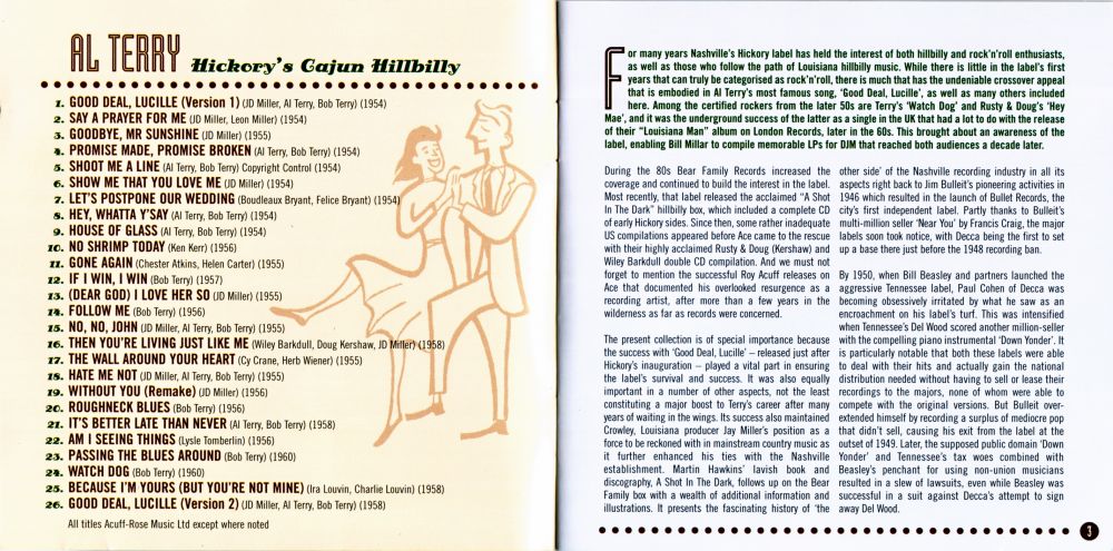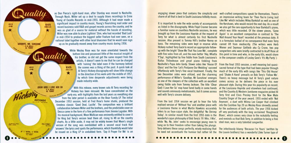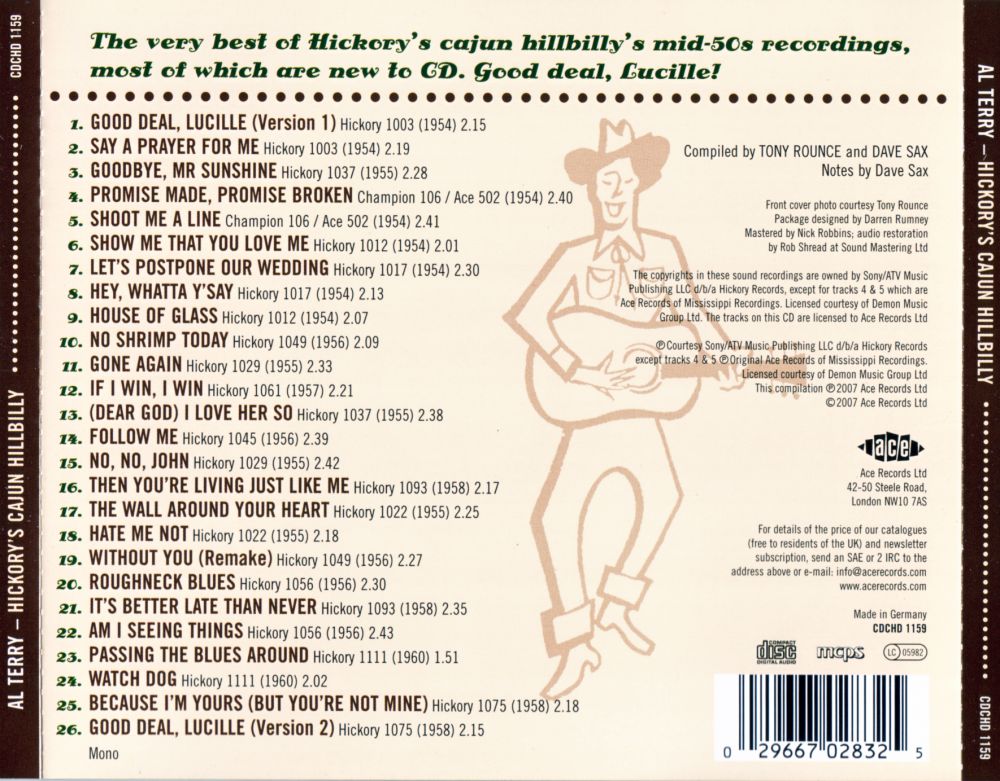 After one of Terry's featured recordings wom extensive airplay in Texas, Louisiana and Mississippi. Mel Foree of the Roy Acuff & Fred Rose - owned Hickory recording company signed Terry to a contract with that label. Terry’s best-known recording is the self-penned 1954 Cajun hit ‘Good Deal, Lucille’, which often appears on compilations.