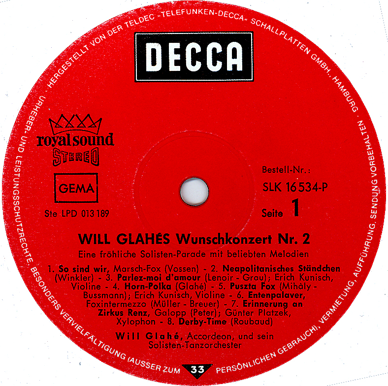 USA London 45-LON 11004 ..und eine "Violetta"-RCA Victor des German Polka Kings, die nicht mit dem Präfix '25' beginnt (so hatte es die "Violetta" auch gegeben: RCA Victor 25-0046). Anhänge an diesem Beitrag Dateiname: Glahe29a.jpg Dateigröße: 146.88 KB Titel: Heruntergeladen: 242 Dateiname: Glahe29b.jpg Dateigröße: 149.62 KB Titel: Heruntergeladen: 233 Dateiname: Glahe27.jpg Dateigröße: 205.11 KB Titel: Heruntergeladen: 235