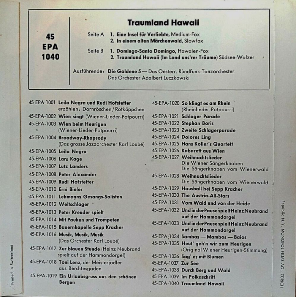 09 58....E 20 073....Adalbert Luczkowski und sein Orchester..Arrivederci Roma/Musicomania