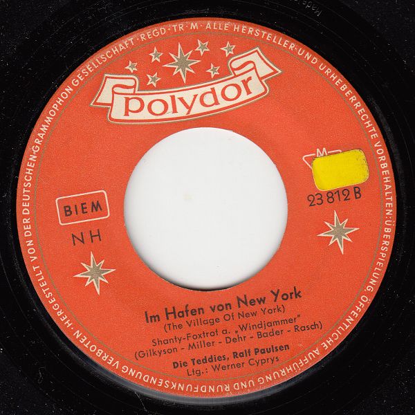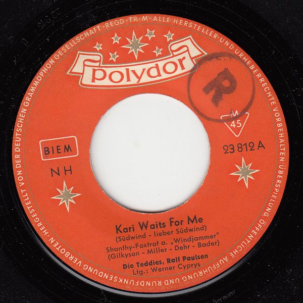 10 58....23 812 A....Die Teddies, Ralf Paulsen Ltg.: Werner Cyprys..Kari Waits For Me (Südwind - lieber Südwind)/ B….Im Hafen von New York (The Village Of New York)