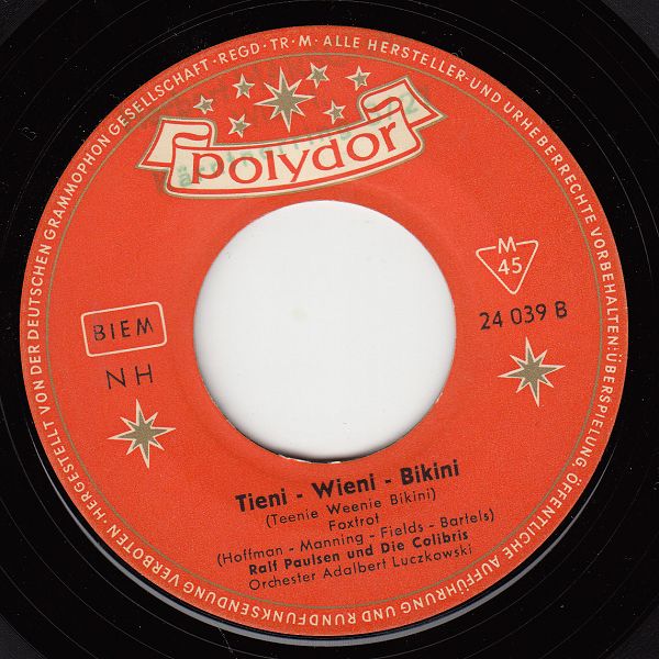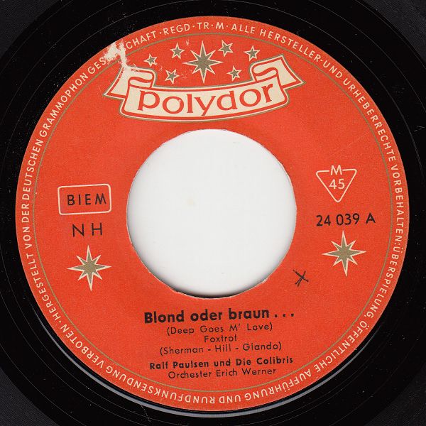 08 59....24 039 A....Ralf Paulsen und die Colibris Orchester Erich Werner..Blond oder braun . . . (Deep Goes M' Love)/ B....Ralf Paulsen und die Colibris Orchester Adalbert Luczkowski..Tieni - Wieni - Bikini (Teenie Weenie Bikini)