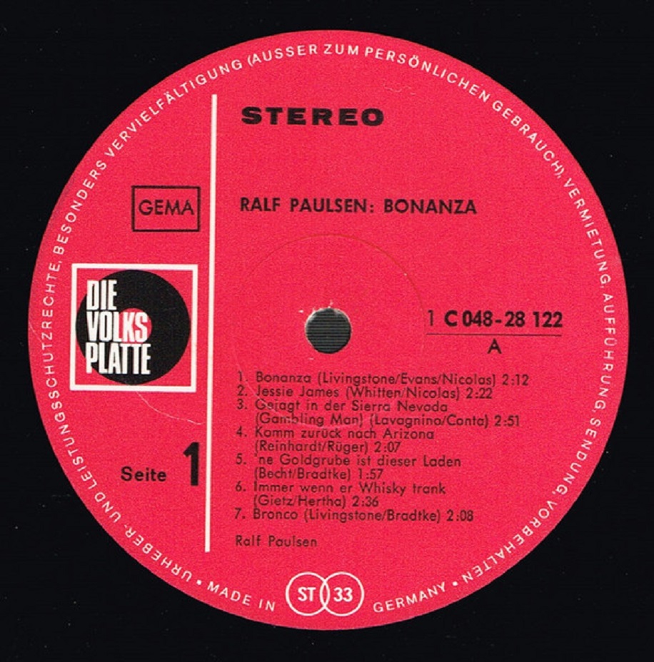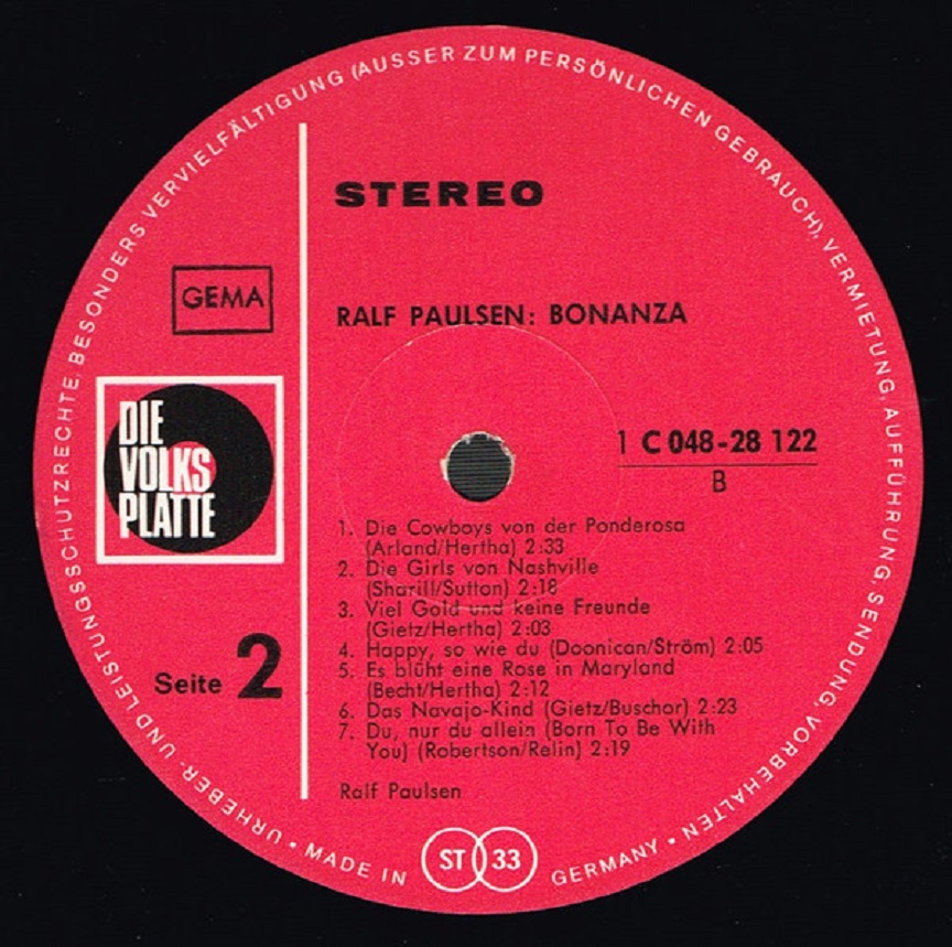12 62....E 22 308....Ralf Paulsen mit Chor und Orchester..Das Navajo-Kind/Bonanza