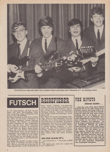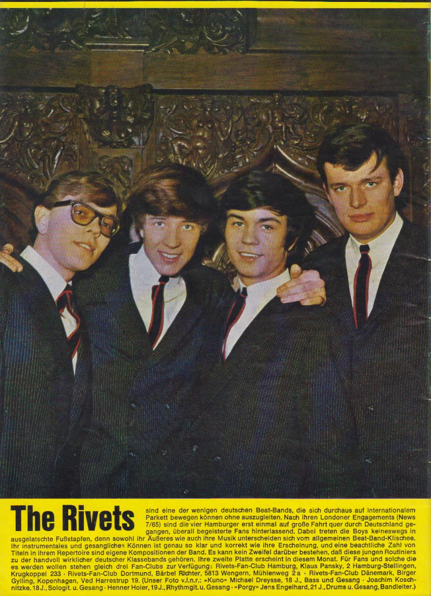 seit 1963 Mitglied der RIVETS, Karrierebeginn 1964 im Star-Club in Hamburg als Leadsänger u. Gitarrist der Gruppe RIVETS (4 Jahre),