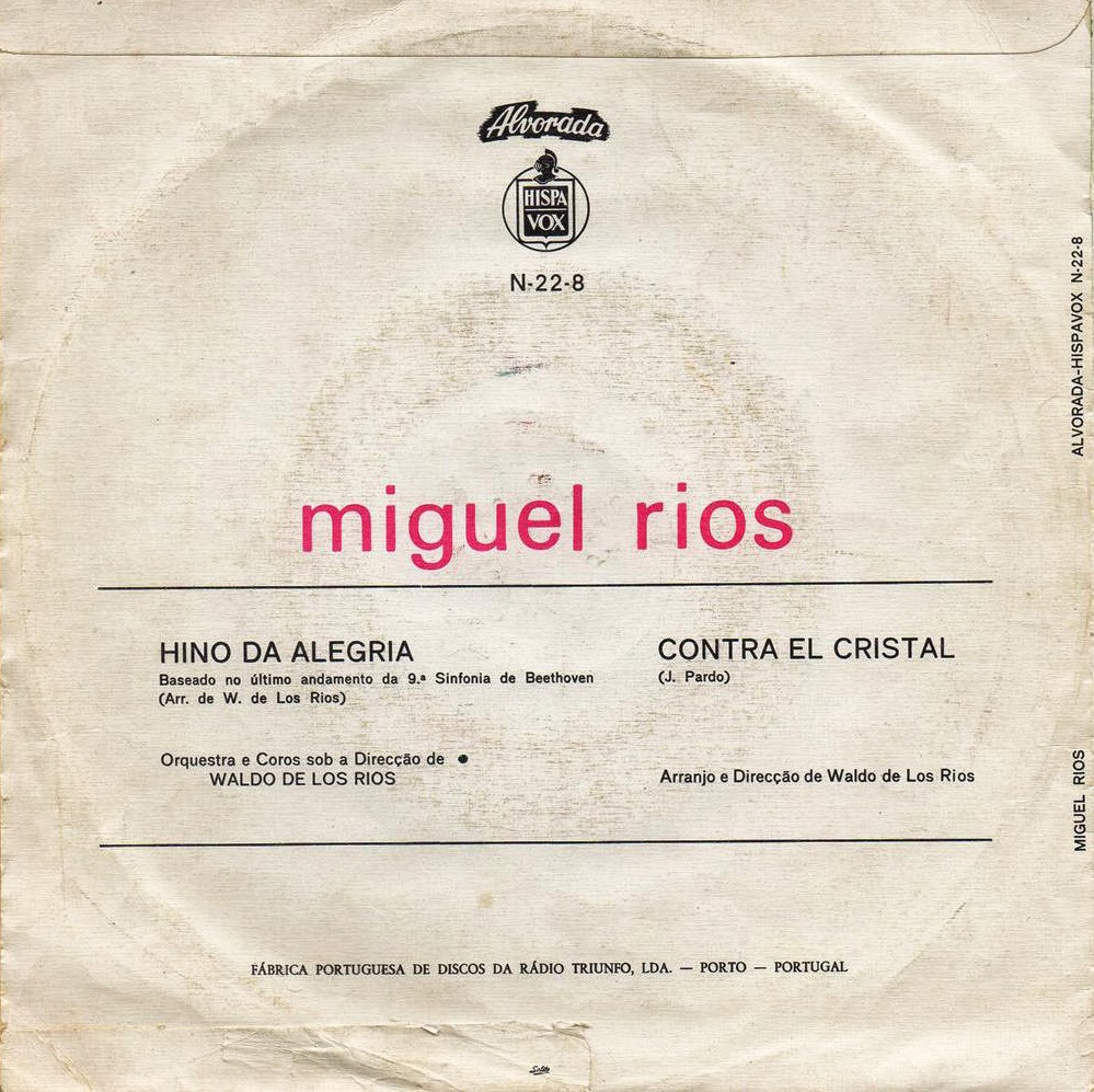 Meiner Erinnerung nach war 1970 bei den Kolleginnen und Kollegen, die irgendwie mit der Materie zu tun hatten (Werbung, Promotion etc.), nichts davon bekannt, daß es für Miguel Rios eine Karriere "vor Beethoven" gegeben hatte... und sollten es vereinzelte Insider doch gewußt haben, so wurde es konsequent totgeschwiegen. Für uns war Miguel Rios damals ein Newcomer, sonst nichts. Auch als ich den Auftrag bekam, für die "Musik Boutique" einen kleinen Artikel zum "Song Of Joy" zu schreiben, hielt man es nicht für nötig, solche Informationen zur Verfügung zu stellen.