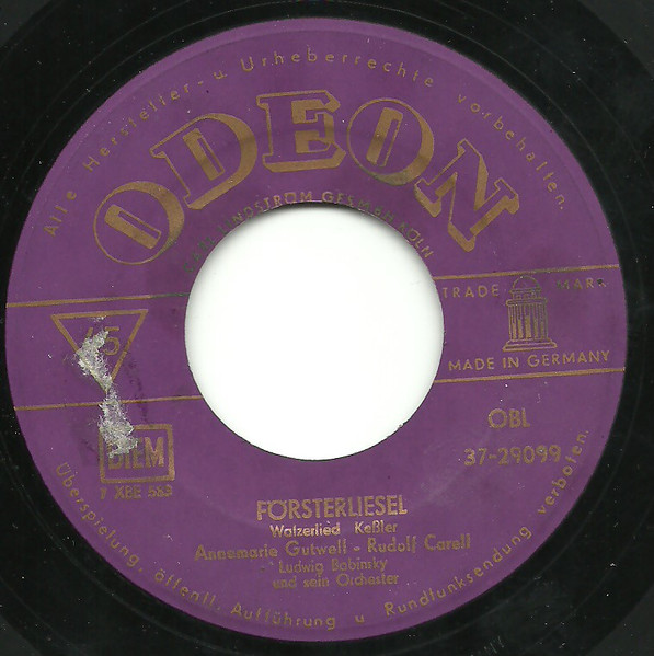 Wenn man sich auf Youtube die ”Försterliesel” sowohl von Anita Gutwell und Rudi Kreuzberger, als auch von Annemarie Gutwell und Rudolf Carell anhört, hört man idente Aufnahmen. Man weiß allerdings nicht, welche Schallplatten der Youtuber verwendet hat, daher kann man nur vermuten, dass es sich bei der ODEON um Rudi Kreuzberger handelt und nur der angeführte Name falsch ist, als definitiv kann man es zurzeit leider noch nicht annehmen. Wenn das so zutrifft wäre es äußerst unwahrscheinlich, das Rudi Kreuzberger davon wusste. Siehe auch #12.