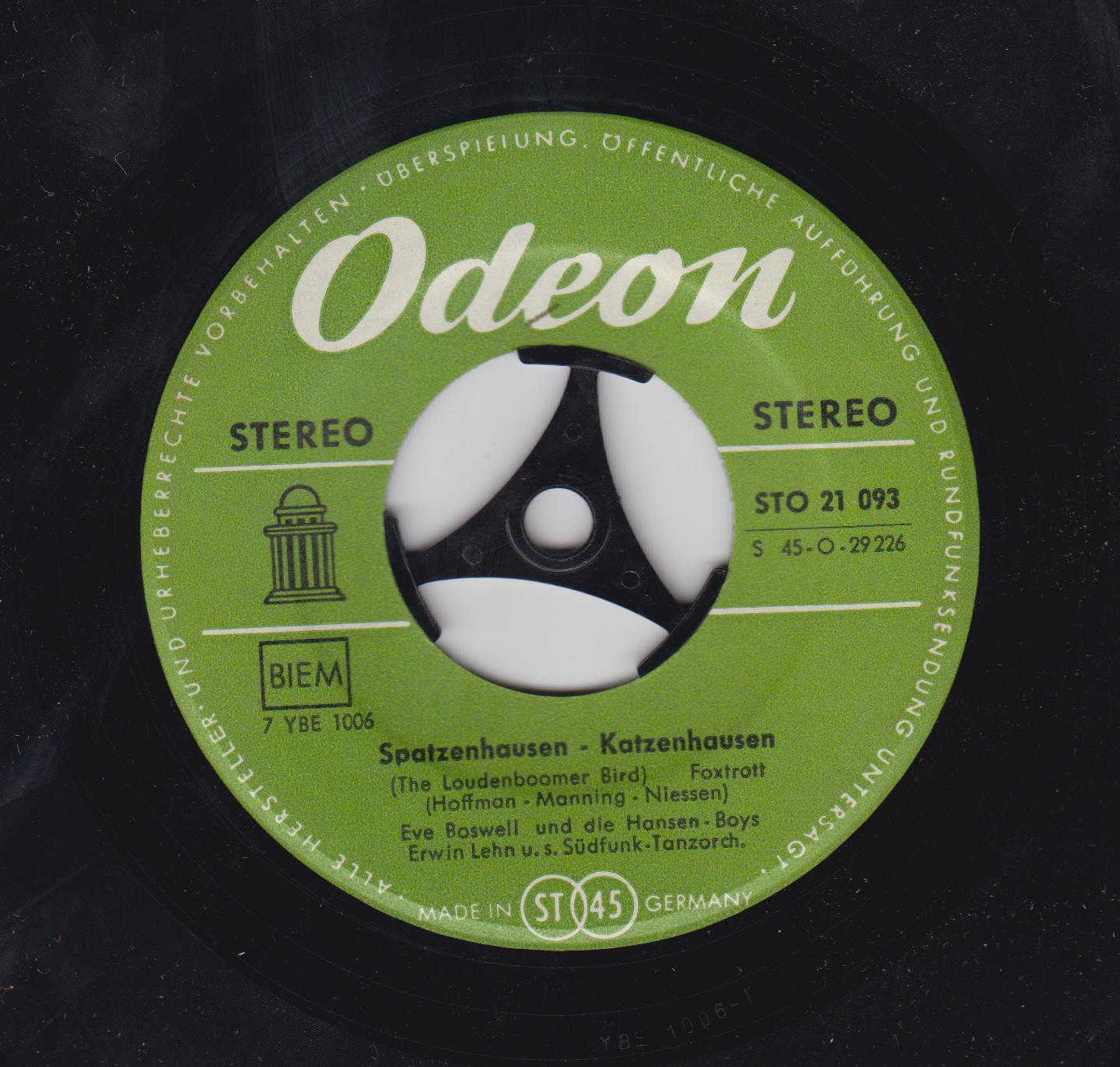 02 59....O 21 093....Eve Boswell, die Hansen-Boys und Girls Erwin Lehn u. s. Südfunk-Tanzorchester..Carolina Moon/EVE BOSWELL die Hansen-Boys Erwin Lehn u. s. Südfunk-Tanzorchester..Spatzenhausen - Katzenhausen (The Loudenboomer Bird)
