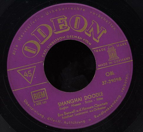 04 57....OBL 37-29098....Eve Boswell u. d. Hansen-Quartett Adalbert Luczkowski u. s. Orchester..Shanghai Doodle/Eve Boswell u. d. Bernd Hansen-Sänger Adalbert Luczkowski u. s. Orchester..Liebes Telefon (Mr. Telefon) (dann O 20549)