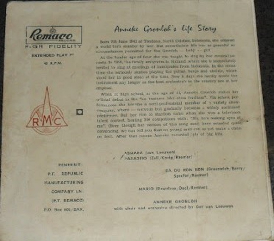 und noch was in indonesisch - da die Single "Paradiso" in holländisch von Sept.1962 war, also selbe Zeit Anhänge an diesem Beitrag Dateiname: anne2.....jpg Dateigröße: 166.29 KB Titel: anne2.....jpg Heruntergeladen: 227 Dateiname: anne1.....jpg Dateigröße: 111.34 KB Titel: anne1.....jpg Heruntergeladen: 267