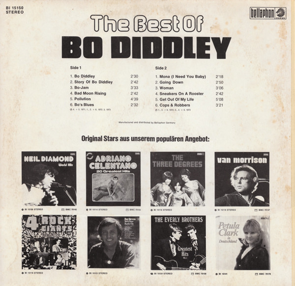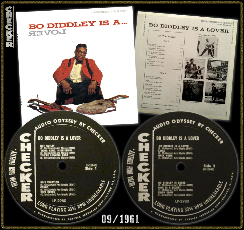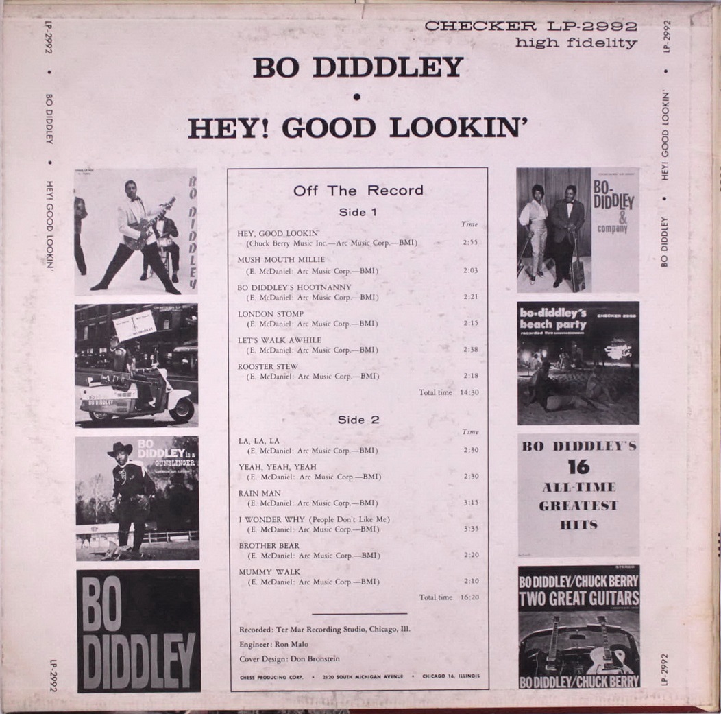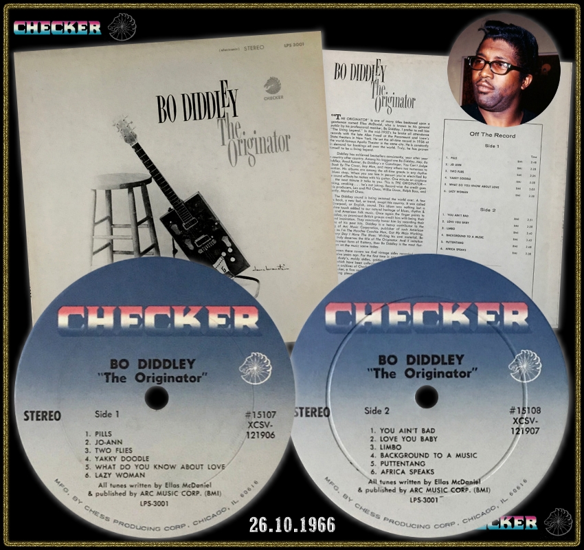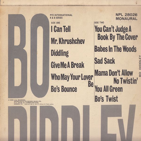 Eigentlich sammle ich ausschließlich Singles, aber am Beginn meiner Sammlertätigkeit wusste ich oft nicht, wie ich zu einem speziellen Titel kam und da kam es zwangsläufig manchmal vor, dass ich mich mit einem Ersatz zufrieden geben musste. Im konkreten Falle ging es um “I Can Tell“, der mein Lieblingstitel von Bo Diddley war und noch immer ist. Vermutlich wusste ich seinerzeit noch garnicht, in welcher Form es ihn in unseren Landen auf Tonträger gab. Jedenfalls wurde mir die britische LP “BO DIDDLEY“, PYE-INTERNATIONAL NPL 28026 angeboten (entspricht der US-LP CHESS 2984). Ich hatte vorerst Bedenken, aber als ich „meinen Titel“ darauf sah, zog ich sie sofort ein. Heutzutage besitze ich natürlich schon lange die Single, aber ich belasse alle meine LPs in der Sammlung.