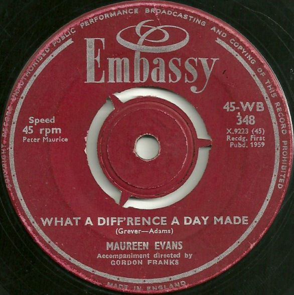 ?? 59....17-051....Maureen Evans Orchester Gordon Franks..Lipstick On Your Collar (15-117)/What A Diff'rence A Day Made (15-118) (GB: EMBASSY WB 348)