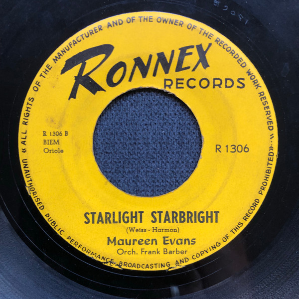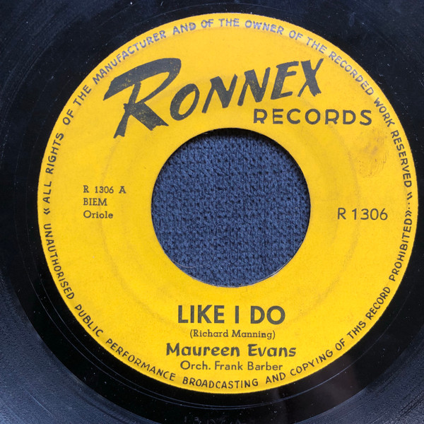 12 62....R 1306....Maureen Evans Orch. Frank Barber..Like I Do (R 1306 A)/Starlight Starbright (R 1306 B) (GB: ORIOLE 1760)