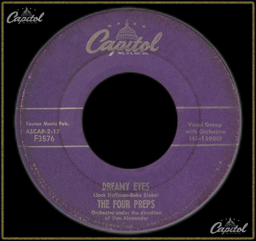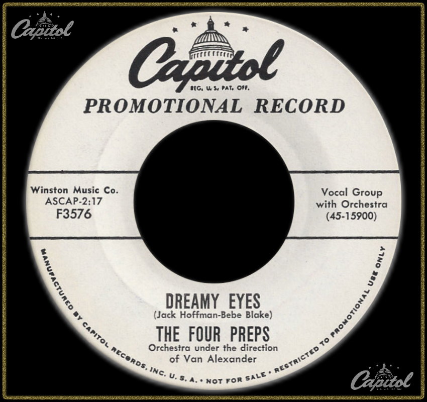 11 56....F3576....THE FOUR PREPS Orchestra under the direction of Van Alexander..Dreamy Eyes (45 15900)/Fools Will Be Fools (45-15901)