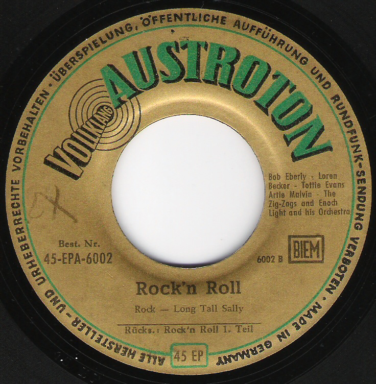 Der Veteran Enoch Light, der ab ca. 1960 einige legendäre Percussion-Stereo-LPs auf dem Command-Label rausbrachte, versuchte sich auch am Rock'n'Roll, ließ aber seine gesamte Swing-Bläser-Section mitspielen.