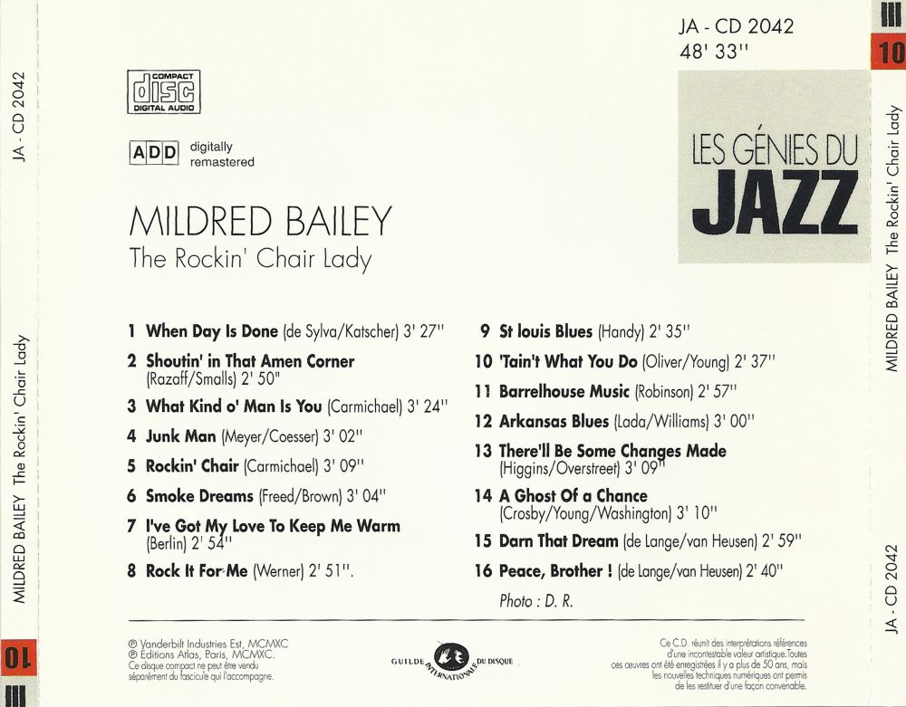 Mildred Bailey nahm am 18. August 1932 mit dem Paul Whiteman Orchestra mit den Solisten Bunny Berigan, Red Norvo und Matty Malneck erstmals den Titel “Rockin’ Chair“ auf.