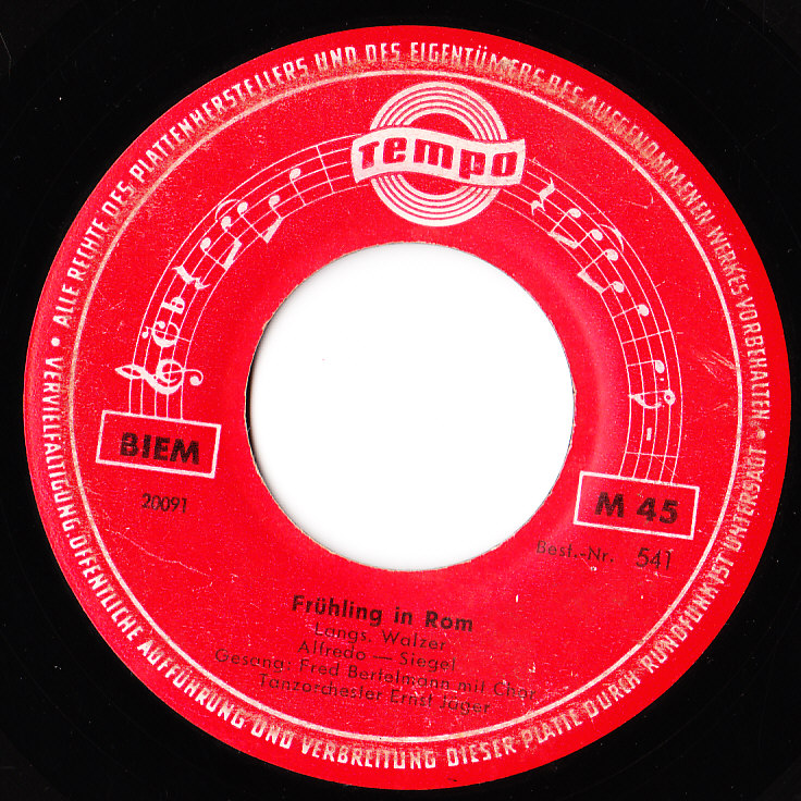 Um aus den Mittsechzigern wieder in die Rocknroll-Forums-Ära zu kommen hier eine TEMPO-Hülle für 78er. Da mir Schellacks nichts bedeuten habe ich leider keinerlei Ahnung darüber. Mich hat aber gewundert, dass diese Hülle die 7 Inch-Größe, also die 45er-Größe, hat. Bei mir dient sie daher auch als Hülle für eine 45er TEMPO.