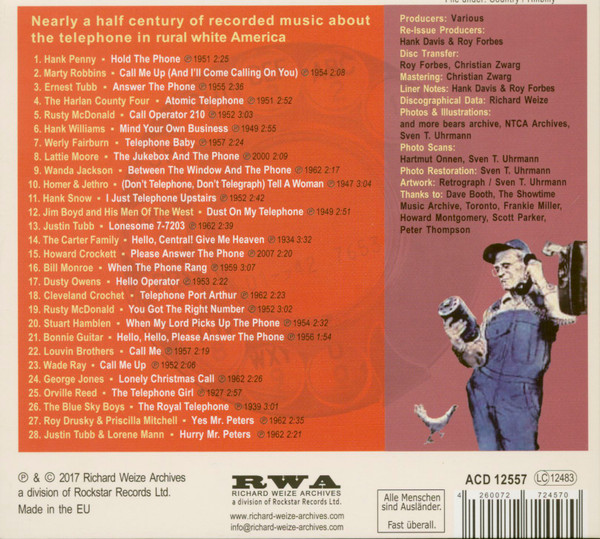 RWA-Wiederveröffentlichung (2017) 'Talkin' Through The Telephone, Vol. 2 (Hillbilly)' Anhänge an diesem Beitrag Dateiname: Telefon57a.jpg Dateigröße: 91.23 KB Titel: Heruntergeladen: 231 Dateiname: Telefon57d.jpg Dateigröße: 150.04 KB Titel: Heruntergeladen: 210