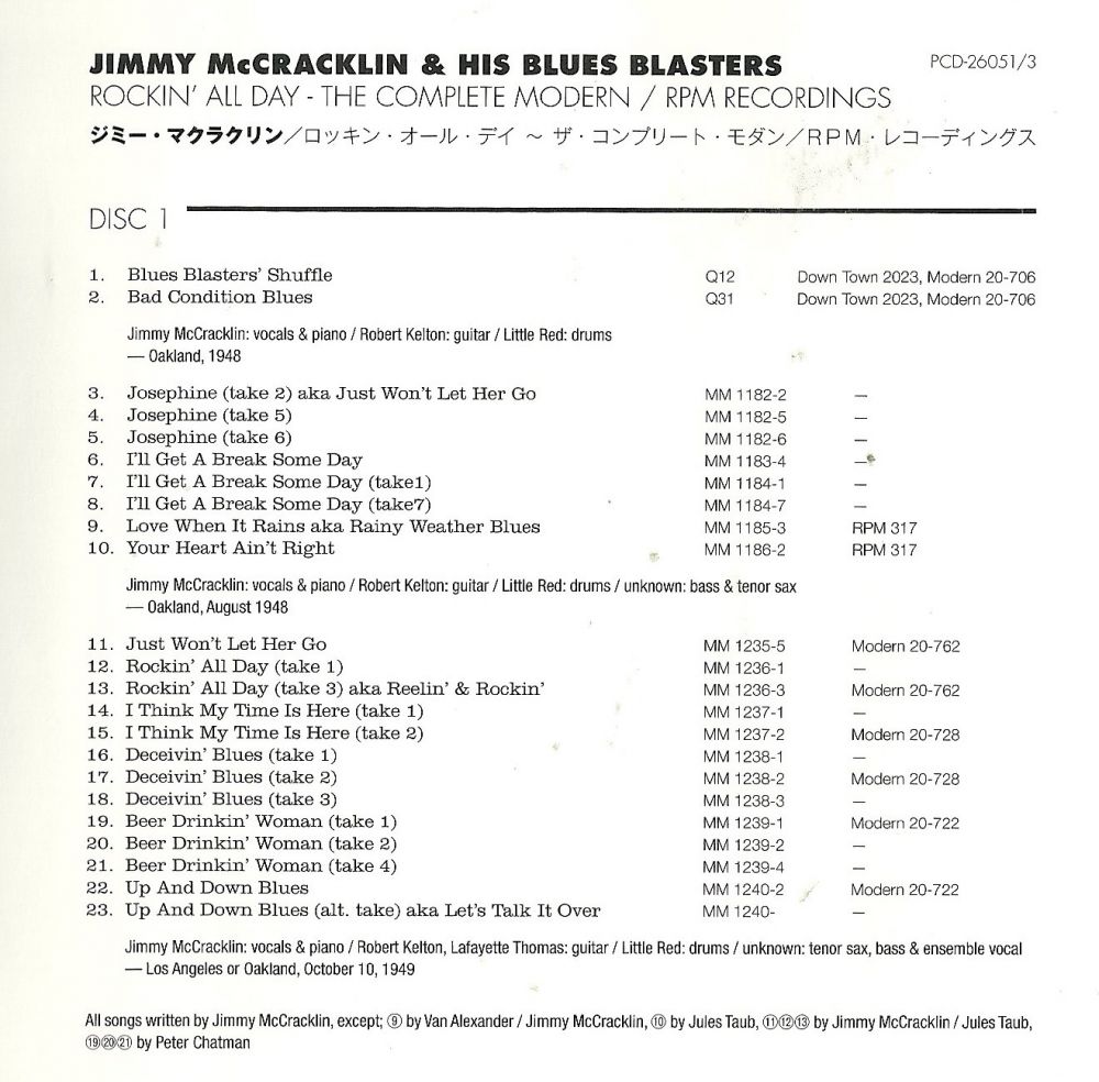 und auch die Titel der Bear Family-CD Anhänge an diesem Beitrag Dateiname: Jimmy McCracklin - T … ront.JPG Dateigröße: 693.08 KB Titel: Heruntergeladen: 159 Dateiname: Jimmy McCracklin - T … Back.JPG Dateigröße: 126.94 KB Titel: Heruntergeladen: 152 Dateiname: BACK.jpeg Dateigröße: 160.27 KB Titel: Heruntergeladen: 171