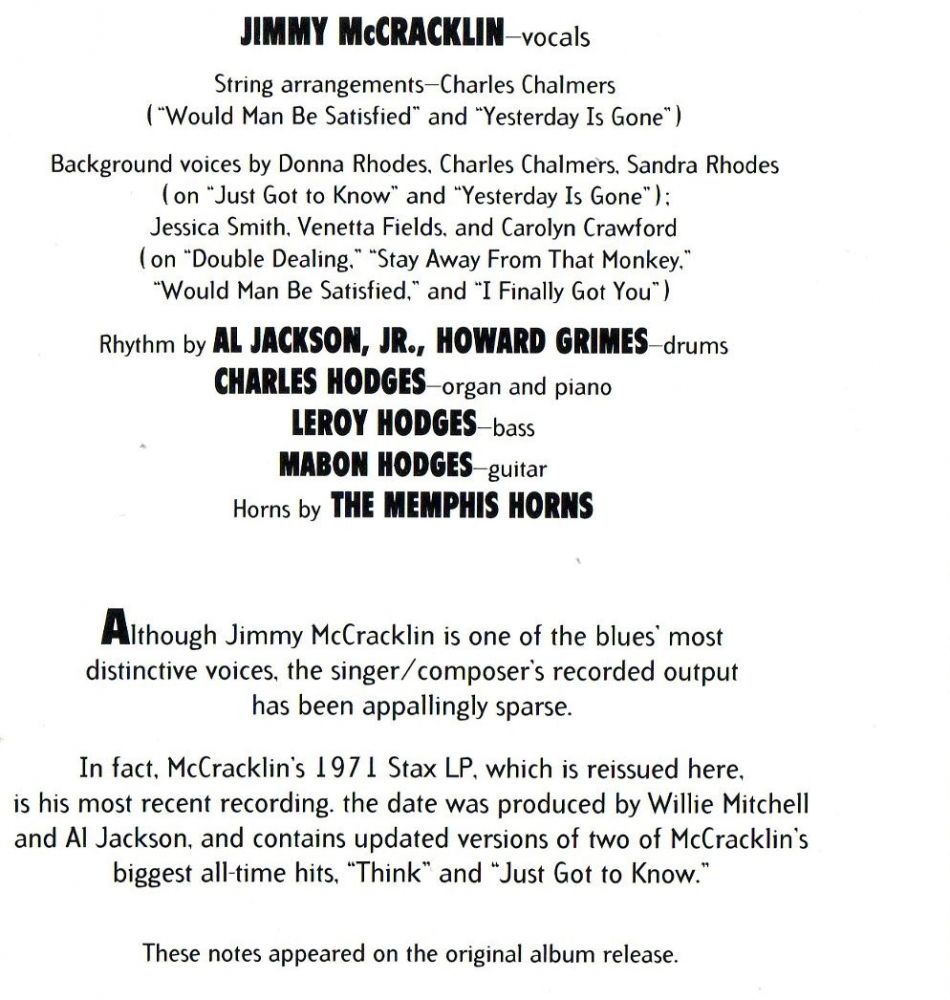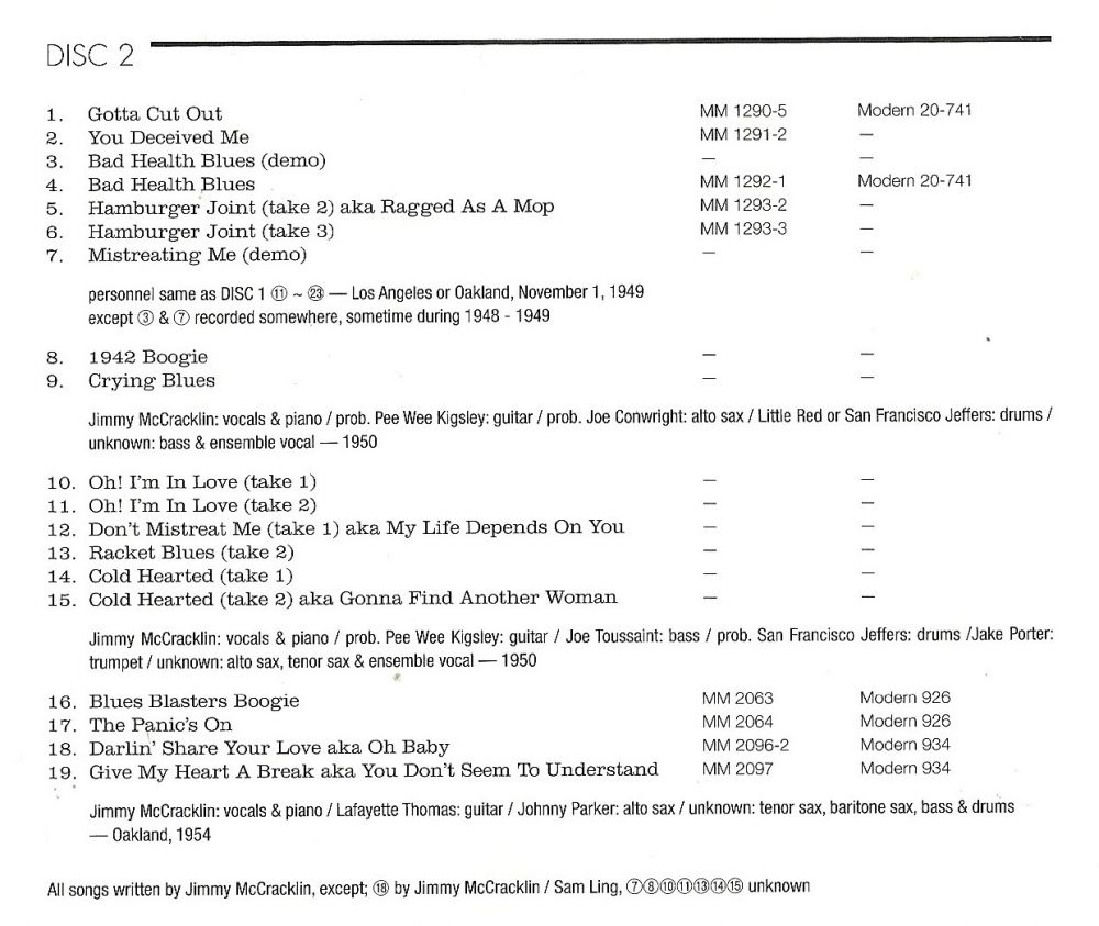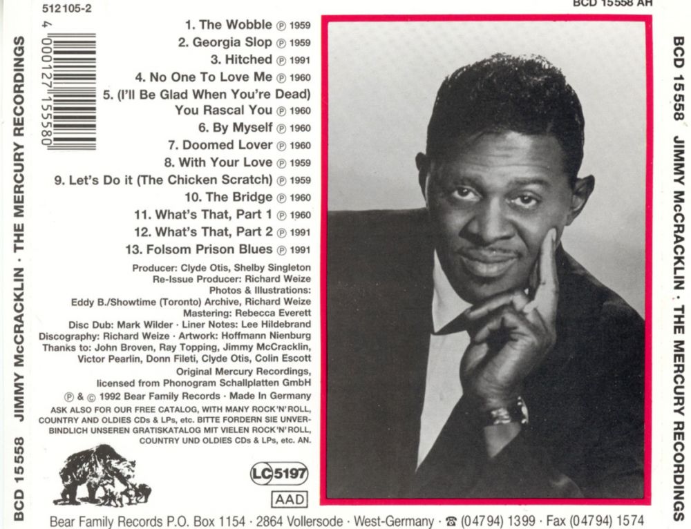 und auch die Titel der Bear Family-CD Anhänge an diesem Beitrag Dateiname: Jimmy McCracklin - T … ront.JPG Dateigröße: 693.08 KB Titel: Heruntergeladen: 129 Dateiname: Jimmy McCracklin - T … Back.JPG Dateigröße: 126.94 KB Titel: Heruntergeladen: 124 Dateiname: BACK.jpeg Dateigröße: 160.27 KB Titel: Heruntergeladen: 138
