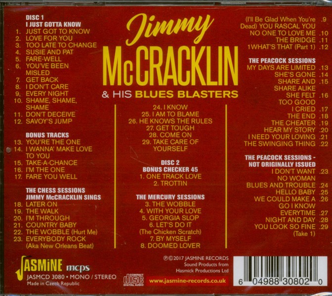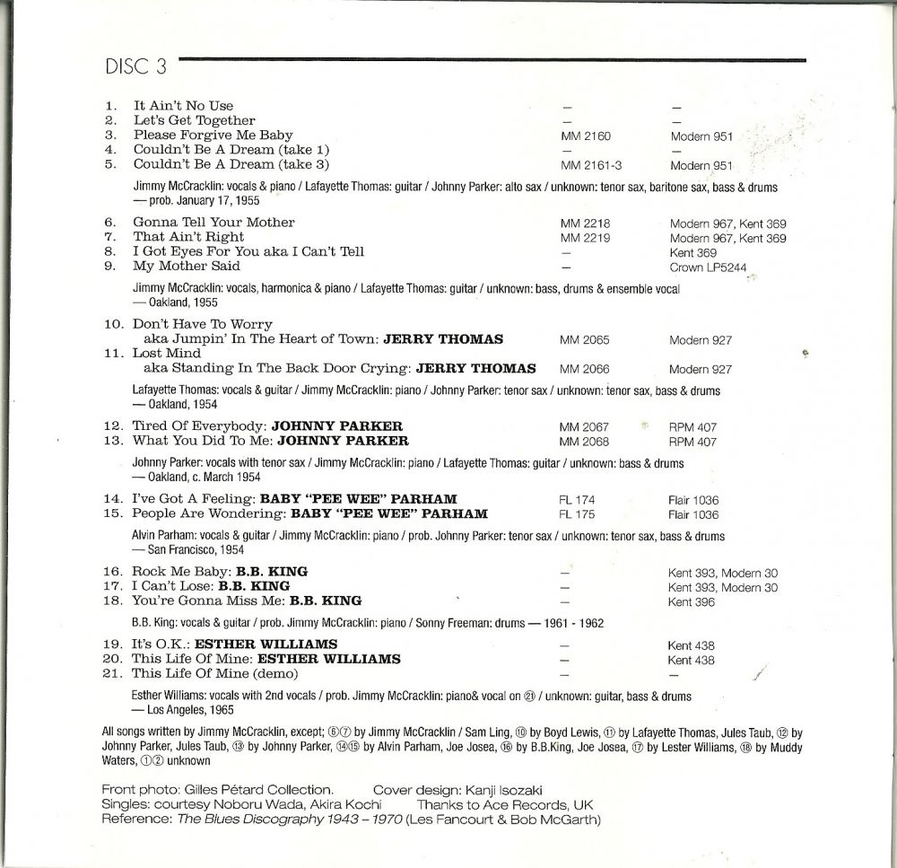 und auch die Titel der Bear Family-CD Anhänge an diesem Beitrag Dateiname: Jimmy McCracklin - T … ront.JPG Dateigröße: 693.08 KB Titel: Heruntergeladen: 143 Dateiname: Jimmy McCracklin - T … Back.JPG Dateigröße: 126.94 KB Titel: Heruntergeladen: 136 Dateiname: BACK.jpeg Dateigröße: 160.27 KB Titel: Heruntergeladen: 155