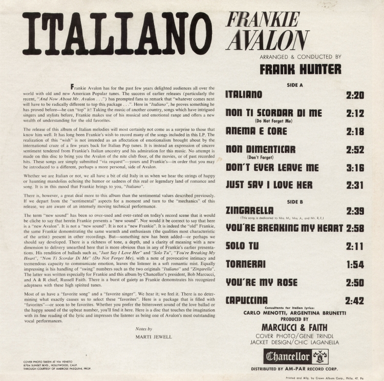die folgende LP ist eine US-Pressung auf Chancellor von 1962 ...