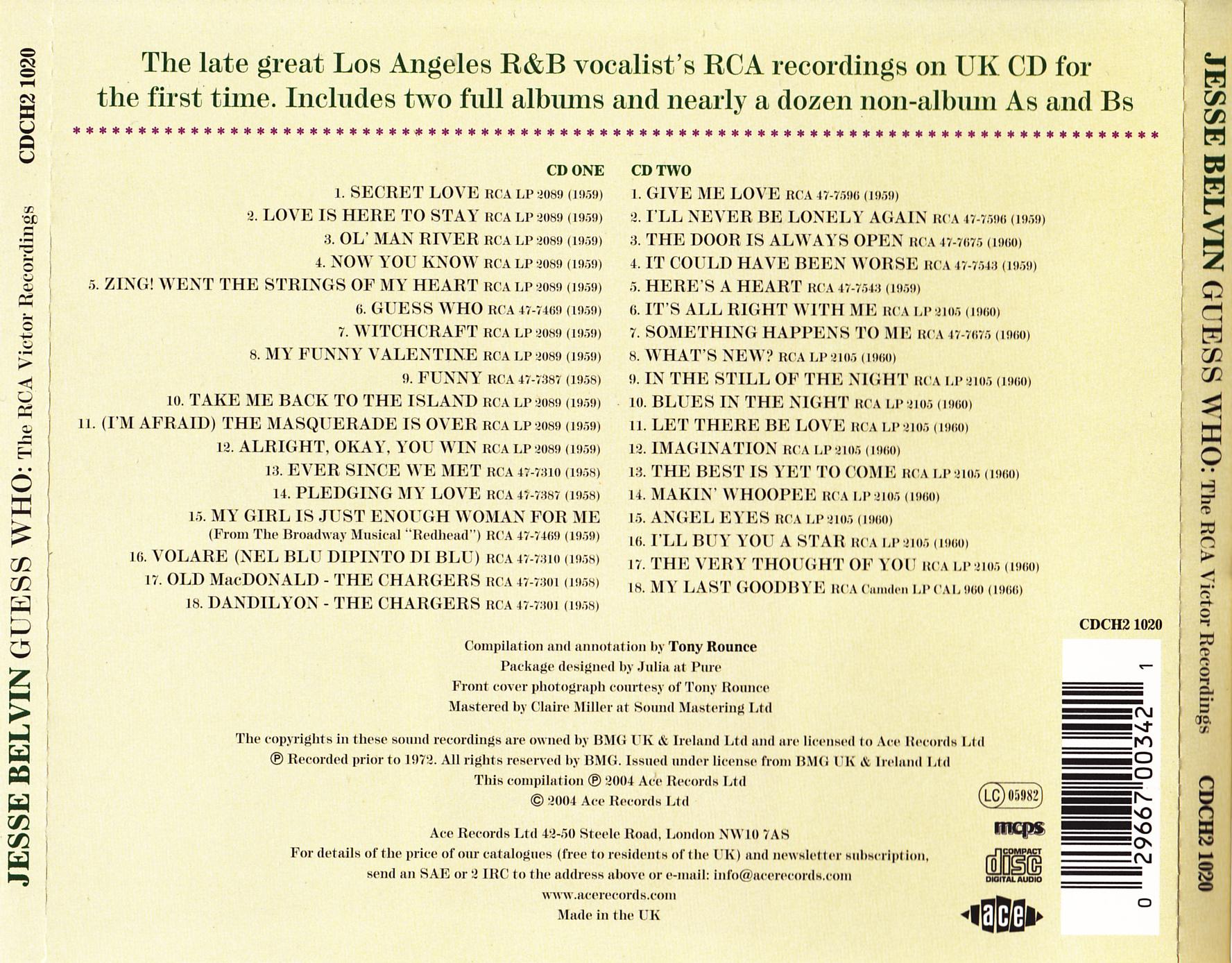 Jesse Belvin wird heute von Musikhistorikern als der “Godfather” - der “Pate” - des Los Angeles Doo Wop bezeichnet, und in der Tat war sein Wirken und sein Einfluss enorm, denn er lieferte zahlreiche Songs, die er oft für kleinere Geldbeträge verkaufte und wirkte bei vielen Aufnahmen anderer als Begleit- oder gar als Leadsänger mit.