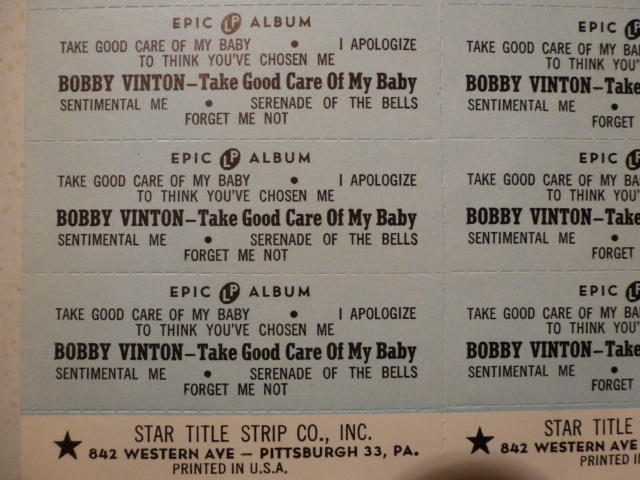 US-Epic-Stereo-EP mit 6 Songs drauf: Take good care of my Baby, I apologize, To think you have chosen me, Sentimental me, Serenade of the bells, Forget me not.