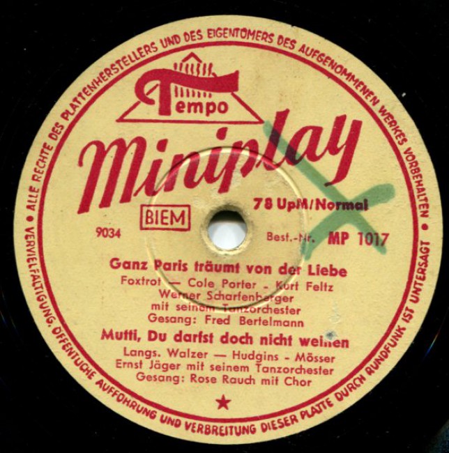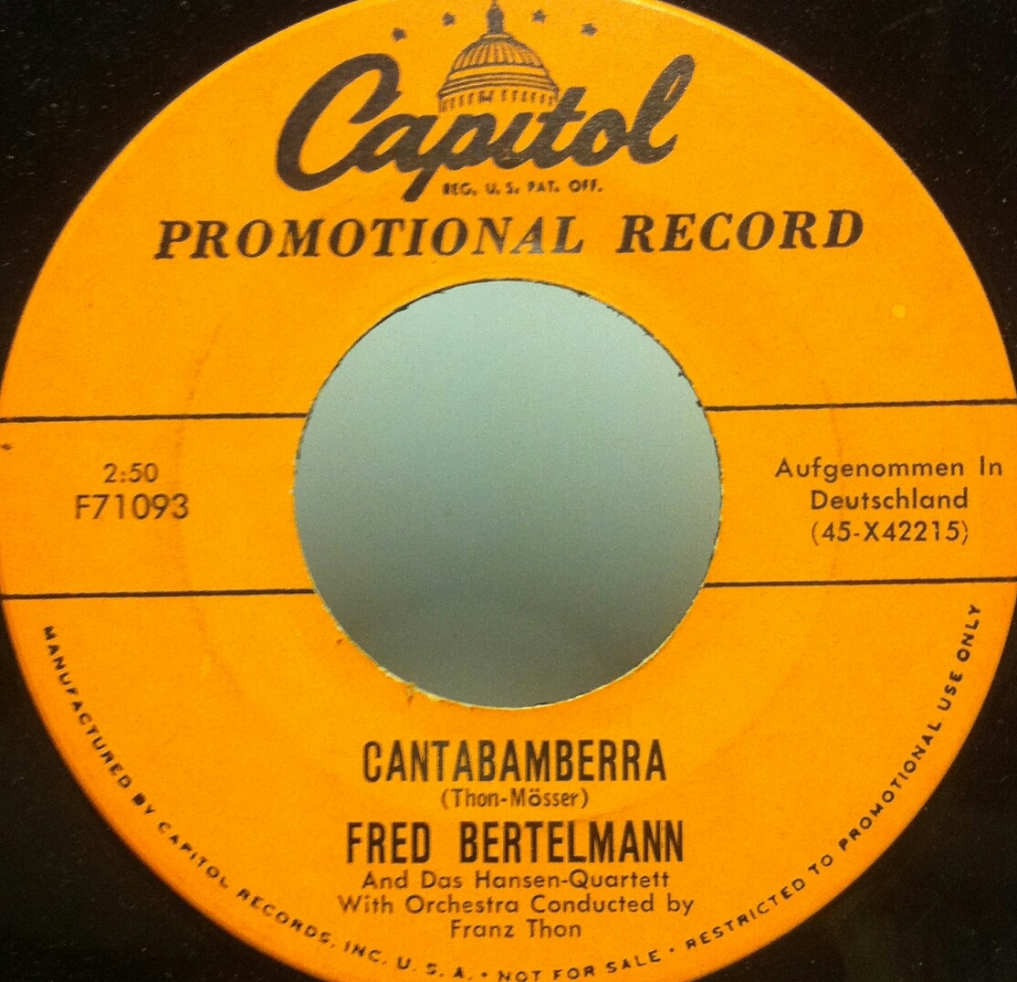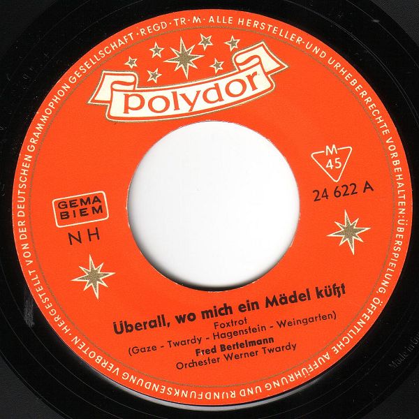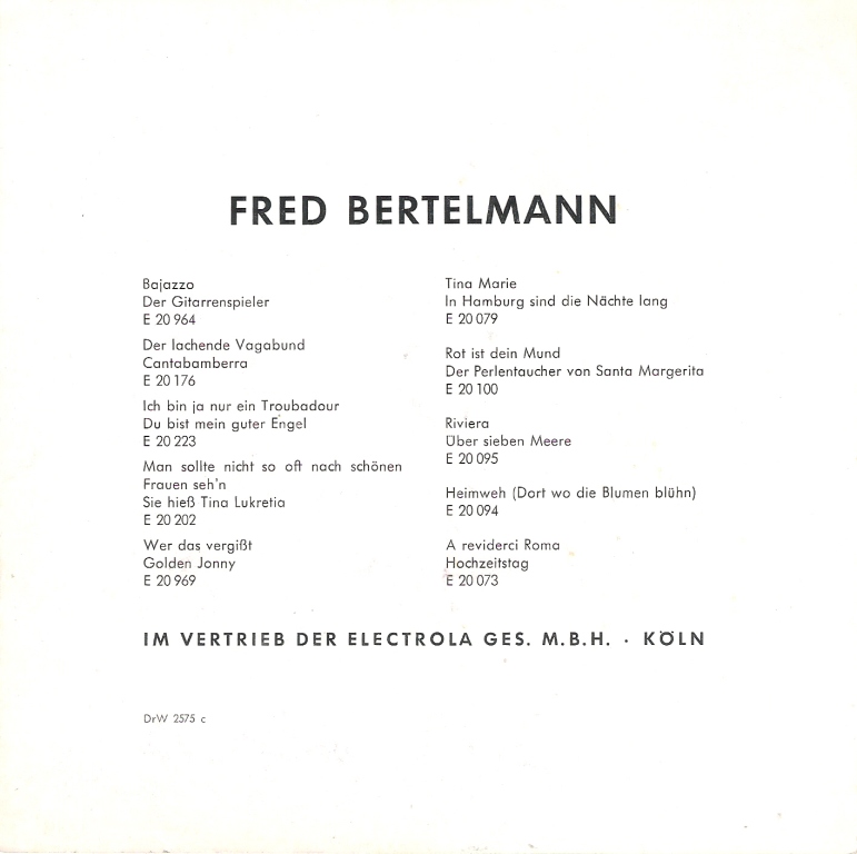 etwas Merkwürdiges habe ich vor 3 Wochen auf dem Flohmarkt gefunden - sieht aus wie eine Bildhülle (Interpret, Titel und Bestell-Nr. sind vermerkt, auf der Rückseite wird für andere Bertelmann-Platten geworben), ist aber eine dünne Pappe in der Größe einer Bildhülle. Evtl. eine Vorlage für die Produktion der Hülle?