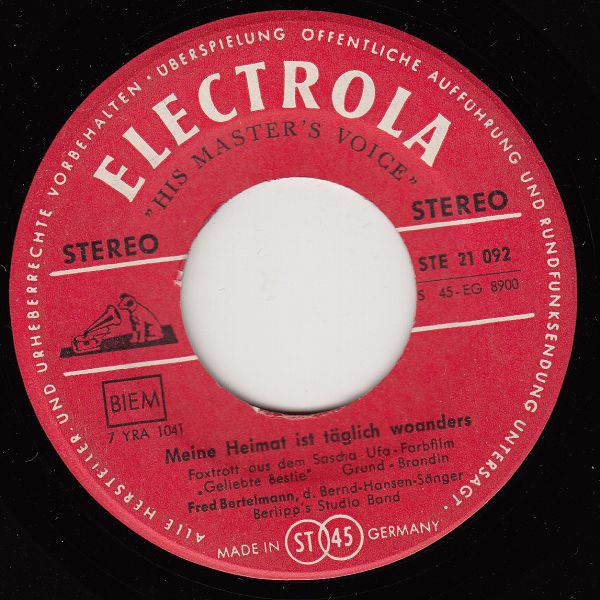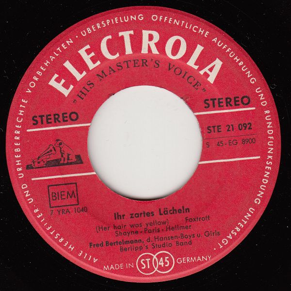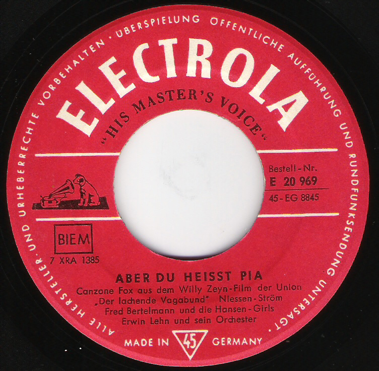 "Torero" / "Aber du heißt Pia" (Electrola E 20969, 1958).