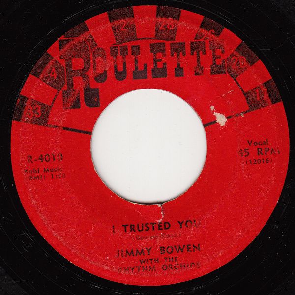 Der Rockabilly-Musiker und Sänger Jimmy Bowen wurde am 30. November 1937 in Santa Rita, New Mexico, als James Albert Bowen geboren. Seine musikalische Karriere begann er als Kontrabassist bei Buddy Knox' Rhythm Orchids, wo er fallweise auch als Vokalist eingesetzt wurde, was er später auch ohne Rhythm Orchids kurze Zeit fortsetzte. Ab etwa 1962 zog er sich von der aktiven Musikausübung fast ganz zurück und wurde Produzent und wichtiger Innovator im Musik-Business, wo er auch heute noch eine wichtige Persönlichkeit zu sein scheint.