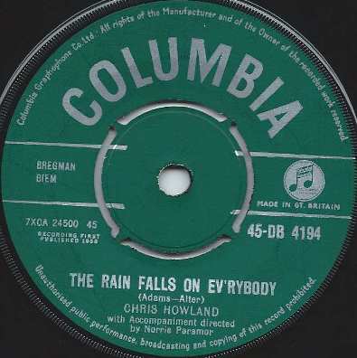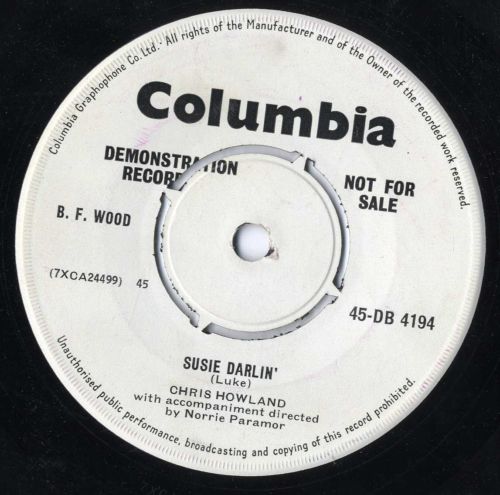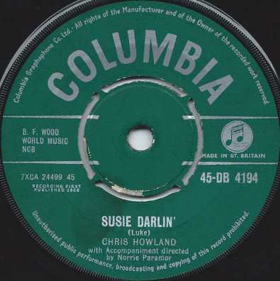 12 58....C 21 017....CHRIS HOWLAND with Accompaniment directed by Norrie Paramor..Susie Darlin'/The Rain Falls On Ev'rybody (UK: COLUMBIA 4194)