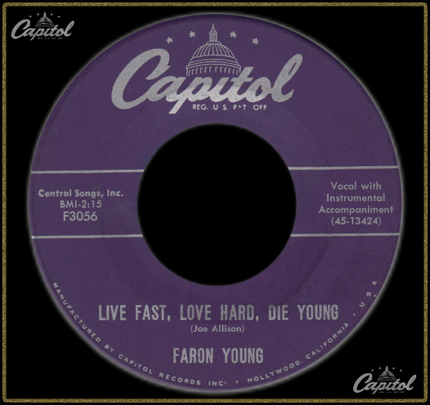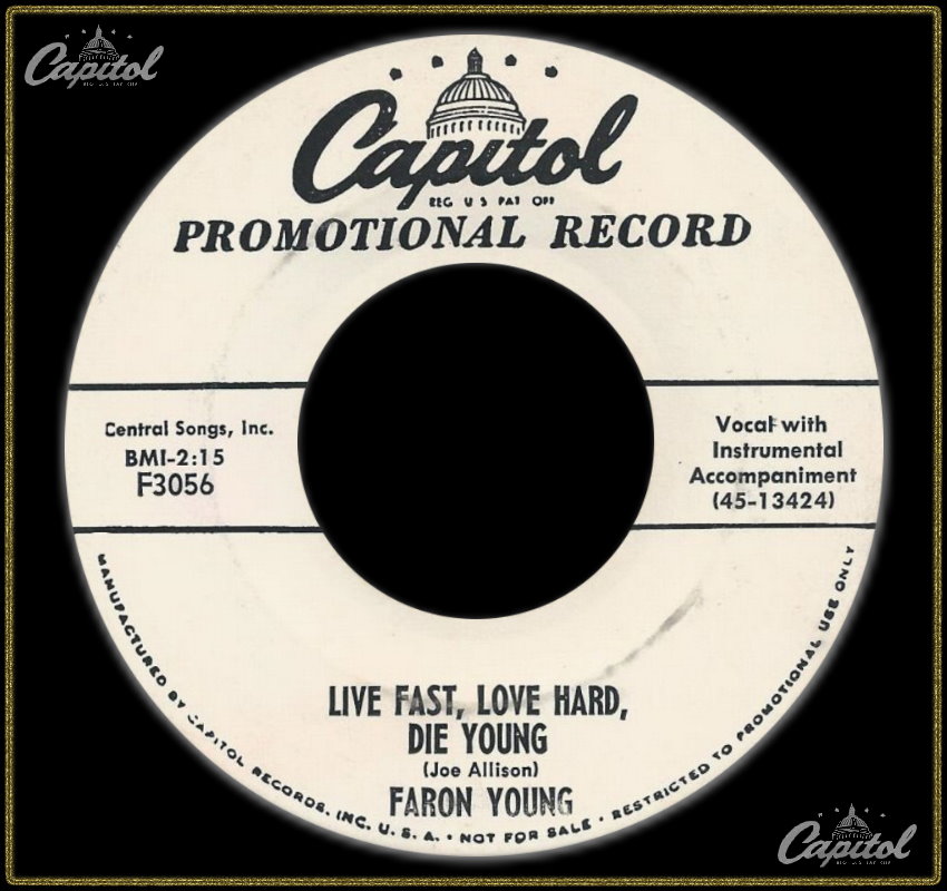 Farons Aufnahmen für Capitol umfassen zehn Jahre Country-Musik-Historie. Er begann als Hank Williams-Adept, doch dann fand Faron seine eigene Stimme und brillierte mit Hits wie “Goin’ Steady“-1953 # 2, “If You Ain't Lovin' You Ain't Livin'“-1955 # 2, “Live Fast, Love Hard And Die Young“-1955 # 1, “I've Got Five Dollars And It's Saturday Night“-1956 # 4 und “Sweet Dreams“-1956 # 2 in Konkurrenz zum Original von Don Gibson (# 9). Dann versuchte er es mit Rock'n'Roll, kehrte dann aber 1958 mit “Alone With You“ (# 1) wieder zu seinen Wurzeln zurück. Mit dem "cross-over"-Titel “Hello Walls“, einem # 1-Hit C&W/# 12 Pop, wurde er 1961 schließlich einer der Pioniere des Nashville-Sound. “Hello Walls“ ist eine Komposition von Willie Nelson.