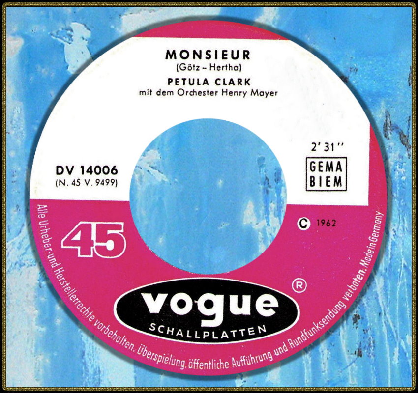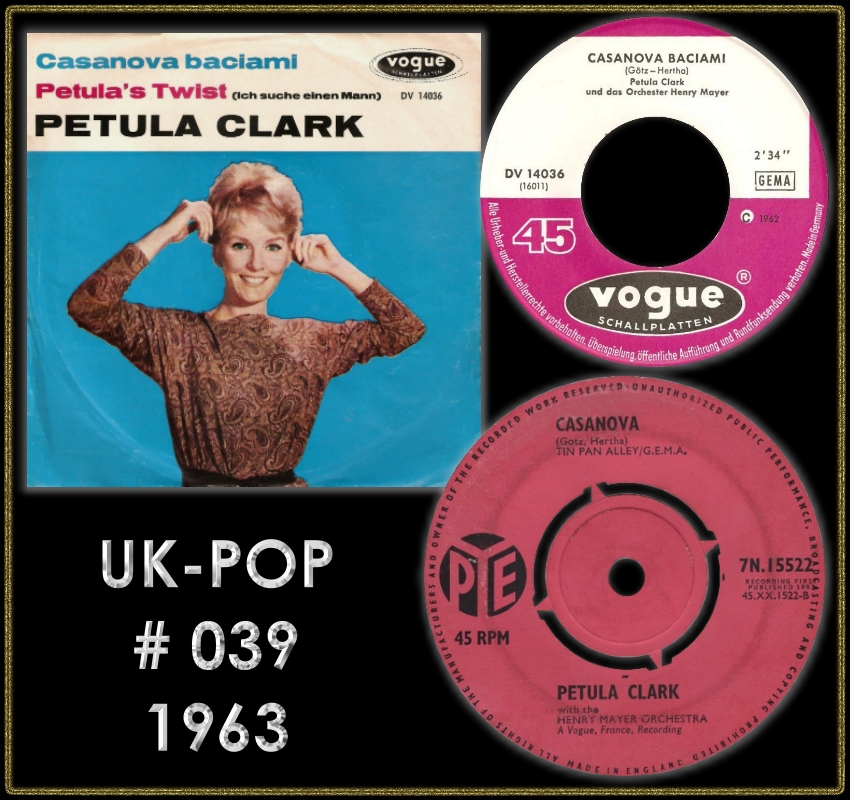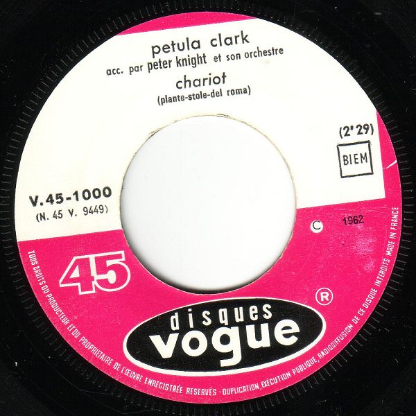 Ihr größter Hit war bei uns zwar "Down Town", den gab es aber erst Ende 1964 und interessiert daher einen Rocknroller wenig bis garnicht. Der für uns wichtigste Song von Petula Clark, mit dem auch "wir" sie gekannt haben, war eindeutig "Chariot" vom Juli 1962. Auf deutsch gesungen war das übrigens bei uns ihr zweitgrößter Hit, aber erst im Frühjahr 1963