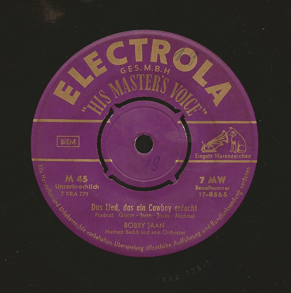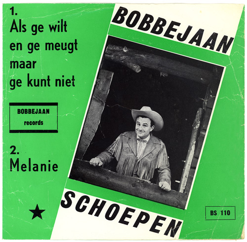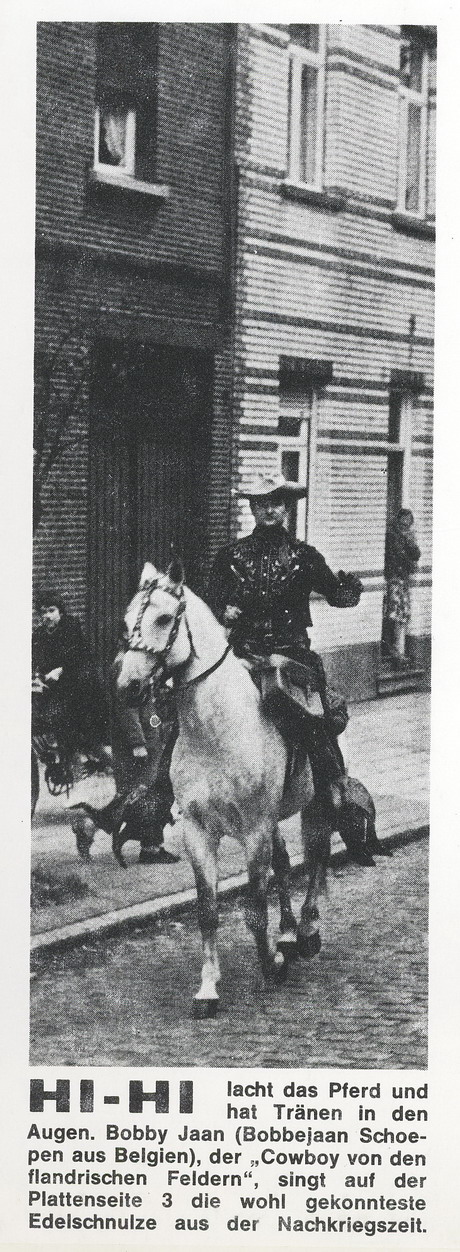 Über seine US-Aufnahmen als Bobby John wurde hier schon berichtet. Wie mein Neueingang zeigt, kehrte er als Bobbejaan kurzfristig nach Amerika zurück, diesmal allerdings nur plattenmäßig mit in Belgien hergestellten Aufnahmen. Sowohl seinen "Bierweiner-Song" als auch "A Bar With No Beer" sandte er auf englisch in die USA. Den zweiten Titel hat er durch Wegnahme des "Pub" und ersetzen mit "Bar" offensichtlich amerikanisiert.
